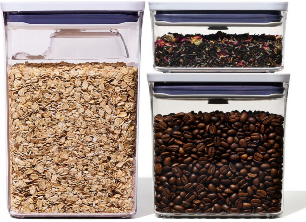 Sada 3 různě velkých dóz z kolekce Pop od značky OXO představuje skvělý start pro změnu způsobu uskladnění potravin v kuchyni. Sada obsahuje 3 dózy obdélníkového tvaru se základnou 10,8 x 16,5 cm o objemu 2,6 l, 1,6 l a 0,6 l a praktickou naběračku, kterou lze umístit na spodní stranu víčka. Důmyslné otevírání a zavírání pomocí PUSH tlačítka. Dózy jsou dokonale stohovatelná s dózami z kolekce POP Good Grips od OXO. Modulární systém pro efektivní skladování potravin.3 vzduchotěsná dózy (nejen) na potravinyJednoduché otevírání / zavírání PUSH tlačítkemModulární a dokonale stohovatelné dózy OXO z kolekce POP různých velikostí a tvarůSada obsahuje:Obdélníková dóza 2,6 l, 10,8 x 16,5 x 24,1 cmObdélníková dóza 1,6 l, 10,8 x 16,5 x 15,9 cmObdélníková dóza 0,6 l, 10,8 x 16,5 x 7,9 cmNaběračka 13,7 x 6,6 x 3,5 cm