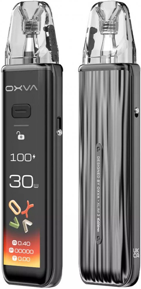 Oxva postupně doplňuje své portfolio Xlim PODů. Nový model Ultra představuje vyšperkovanou verzi Pro. Spolu s modelem Pro 3 sdílí parametry jako 30 W výkonu, 1500 mAh baterii s rychlodobijením, možnost žhavení tlačítkem i potahem, regulaci tuhosti potahu a 2 ml objem s vrchním plněním. Odlišuje se však ve dvou parametrech: velkém 2,2" barevném displeji s full HD rozlišením a čipsetem s funkcí Super Pulse.