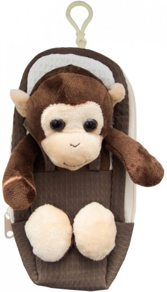 Na přední straně je přišitá plyšová opička s roztomilou hlavou, rukama a nožkami, takže působí jako malý plyšák, který hlídá všechny dětské poklady. Pouzdro se otevírá shora a je vyrobené z měkkého plyšového materiálu v kombinaci s textilní tkaninou. Uvnitř má podšívku z odolného polyesteru, která chrání obsah při každodenním používání. Na zadní straně je praktická karabinka, pomocí které lze pouz...