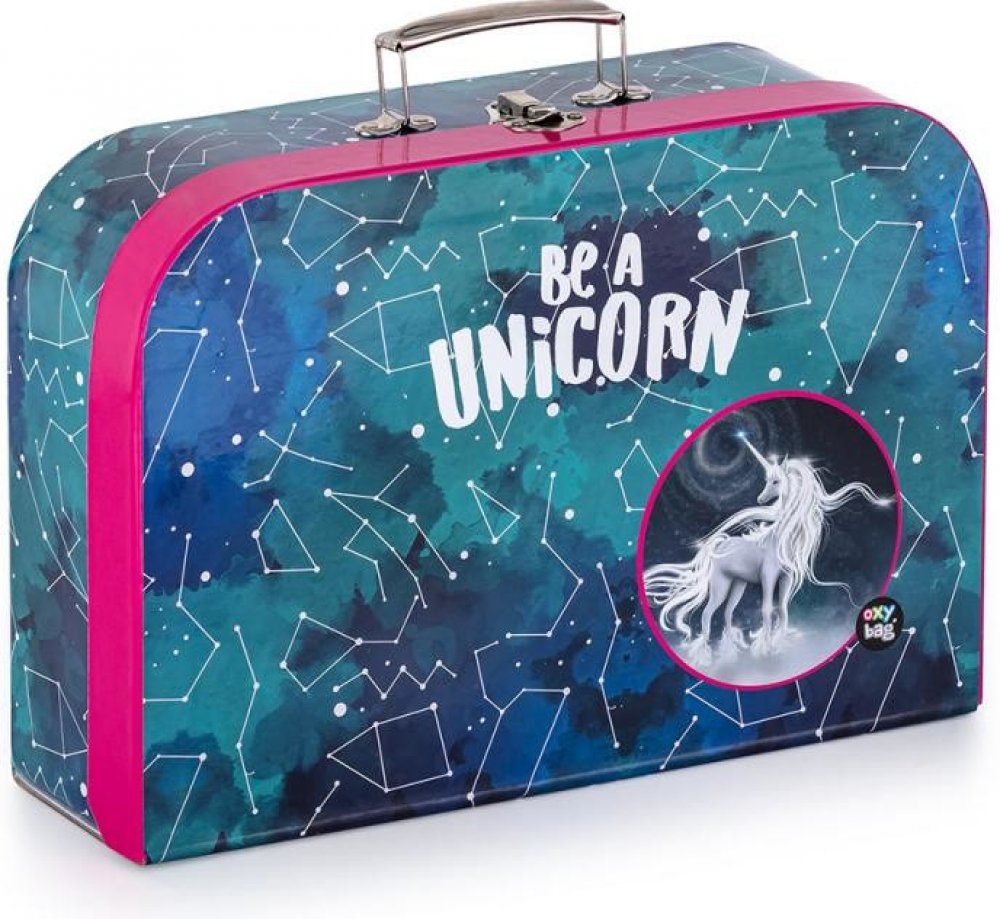 Lamino kufřík na výtvarnou výchovu s motivem jednorožce. Do kufříku se vejde formát A4.Materiál: papír, lepenka, kovoý zámeček, kovové nýtyRozměry: 34 x 23 x 10 cm Hmotnost: cca 450 g Nosnost: max. 2 kgVýrobce: Karton P+P