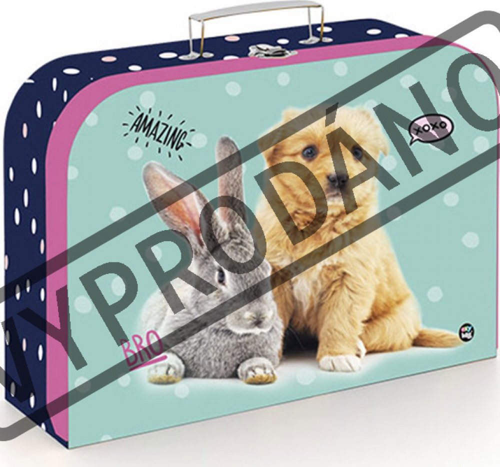laminovaný kufřík z kartonové lepenky a potažený potištěným papírem