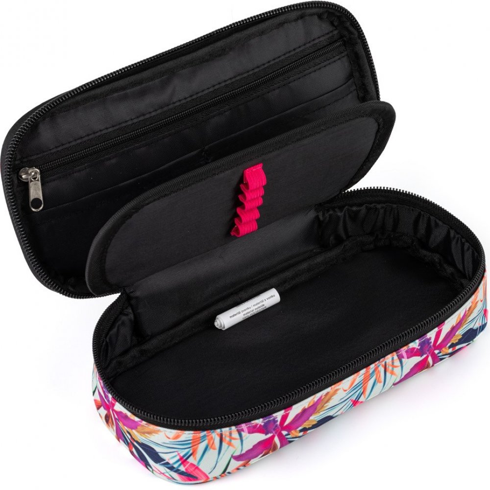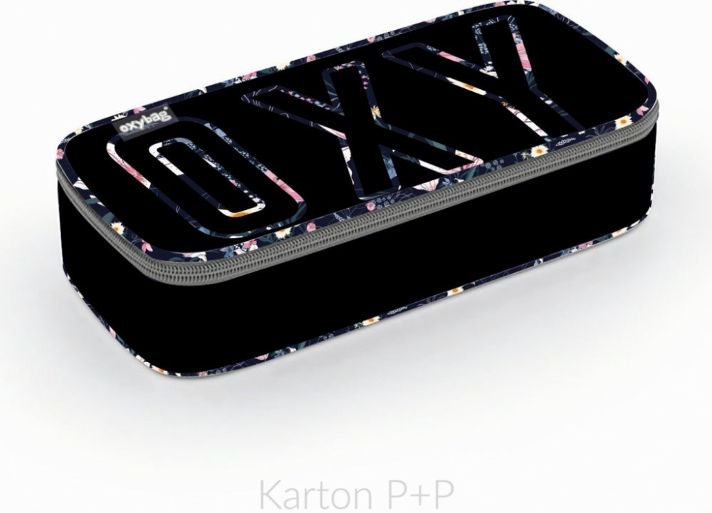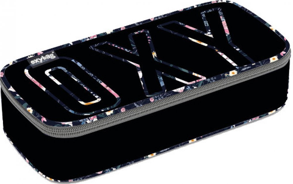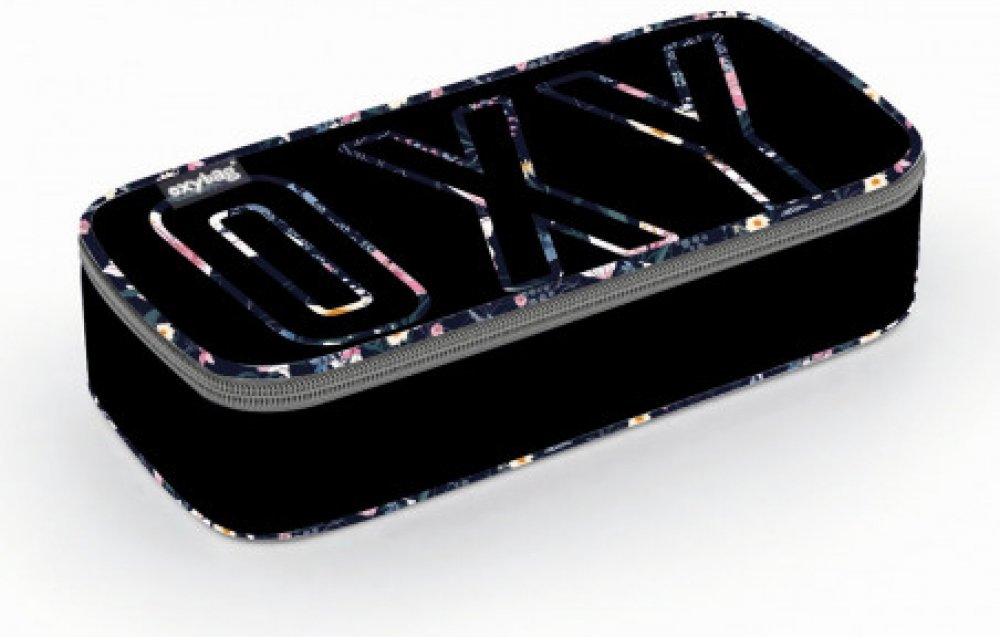 Školní pouzdro etue OXY. Pouzdro je opatřeno pevnými zipy, kapsičkou na zip a klopou s pevnými poutky po obou stranách. Pod klopou je místo pro volné uložení psacích potřeb nebo jiných drobností. Vhodné pro školáky na 2. stupni a starší studenty.