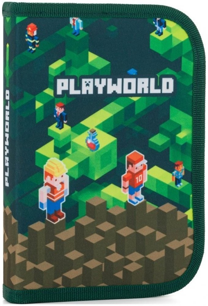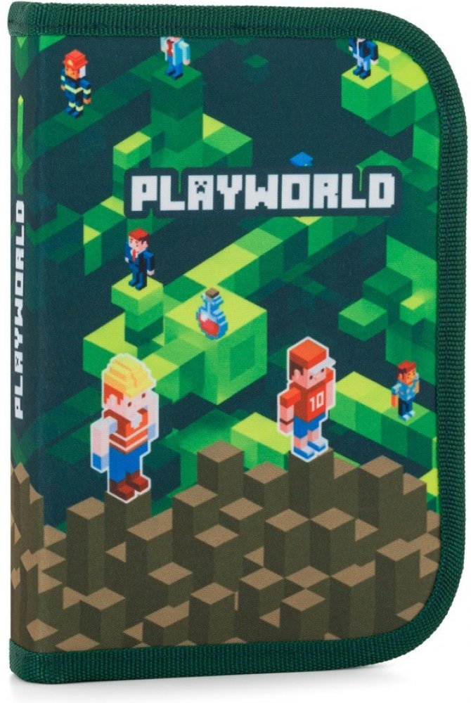 Školní penál jednopatrový s 2 klopami, prázdný obsahuje 25 gumových poutek pro uchycení psacích potřeb. Na vnitřních chlopních jsou průhledné fólie pro rozvrh hodin.Rozměr: 140*210*35 mm, Hmotnost: 210 g