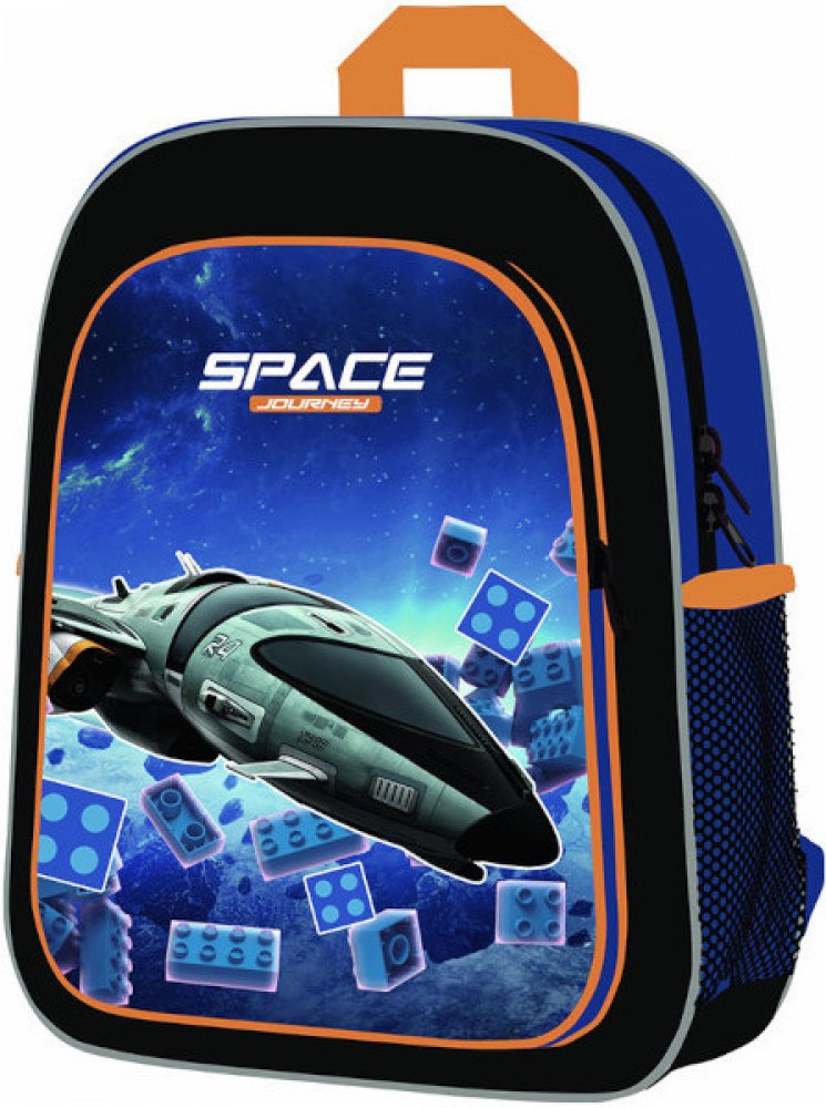 Má jednu velkou kapsu, menší kapsu na svačinu a postranní kapsičky na lahev na pití.
