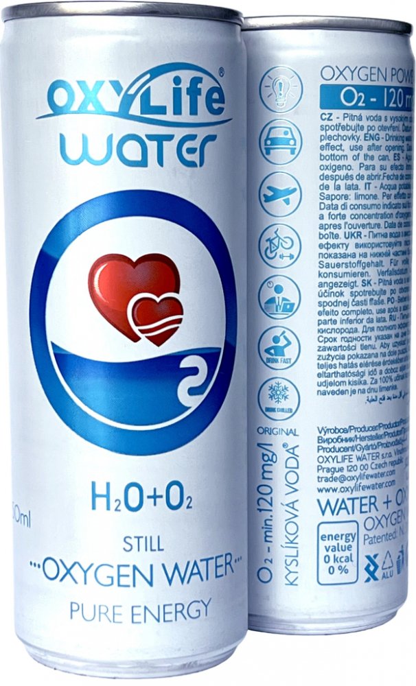 Pro zajištění uchování vysoké hladiny kyslíku je kyslíková voda pouze v plechovkách z vysoce kvalitního materiálu.