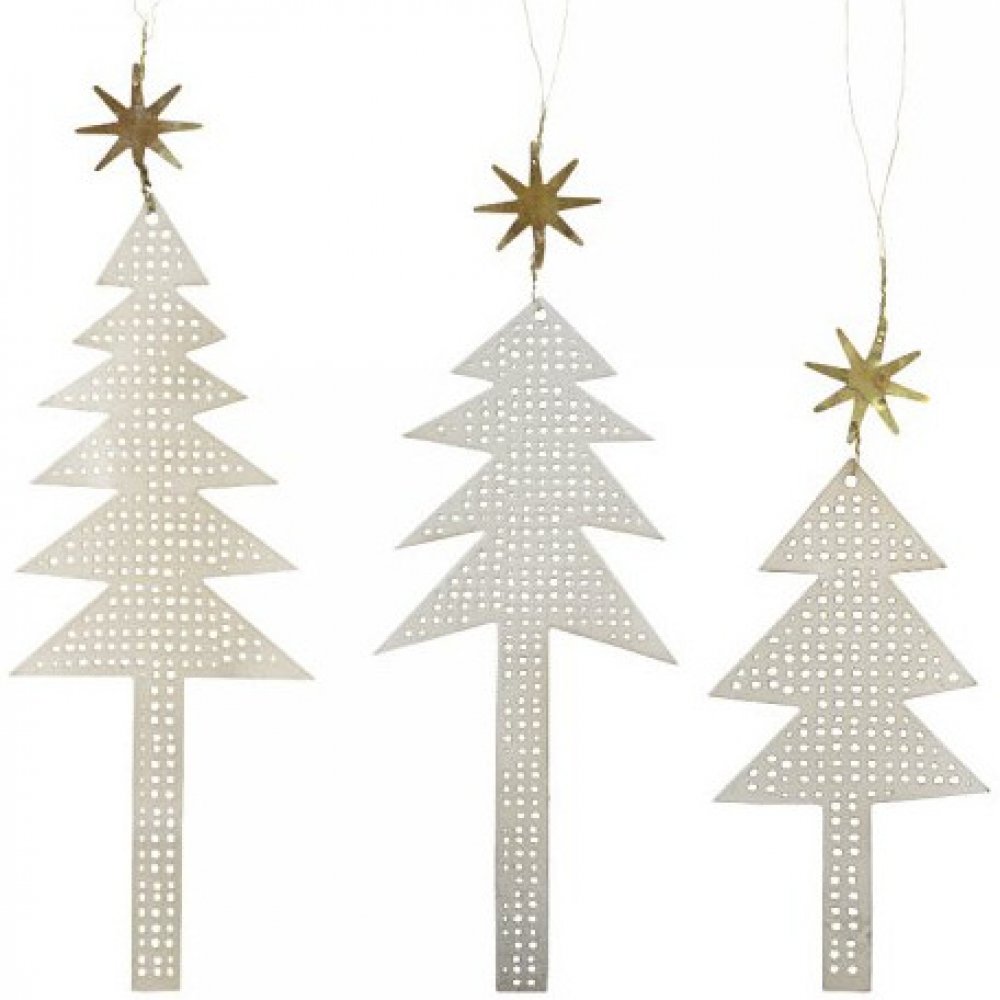 Vánoční ozdoby od dánské značky House Doctor jsou velmi nápadité a přitom si zachovávají severský minimalismus. Klasické vánoční symboly jako jsou stromečky, jsou vyrobeny z kovu ve sváteční stříbrné barvě. Zavěste je společně na větev ve skleněné váze nebo na větvičky vánočního stromečku. Budou se krásně vyjímat i zavěšené v okně nebo na dveřích. Sada obsahuje tři kusy různě velkých stromečků.