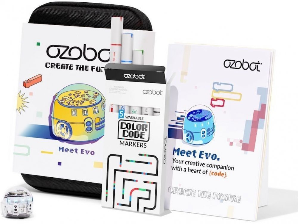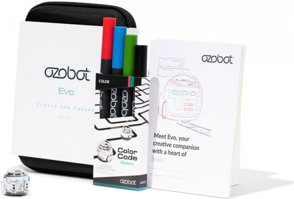 Nová verze Ozobota Evo je nadupaná funkcemi, diodami a senzory a přesto jeho baterie vydrží téměř hodinu. Komunikuje s vámi přes Bluetooth, nebo prostřednictvím zvuků a barevných diod. Ozobot Evo funguje s dotykovou obrazovkou i jen tak s papírem. Hrajte s ním hry nebo ho naprogramujte k řešení úkolů pomocí intuitivní platformy OzoBlockly.