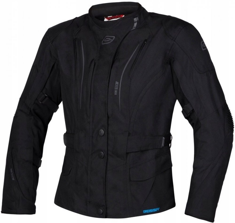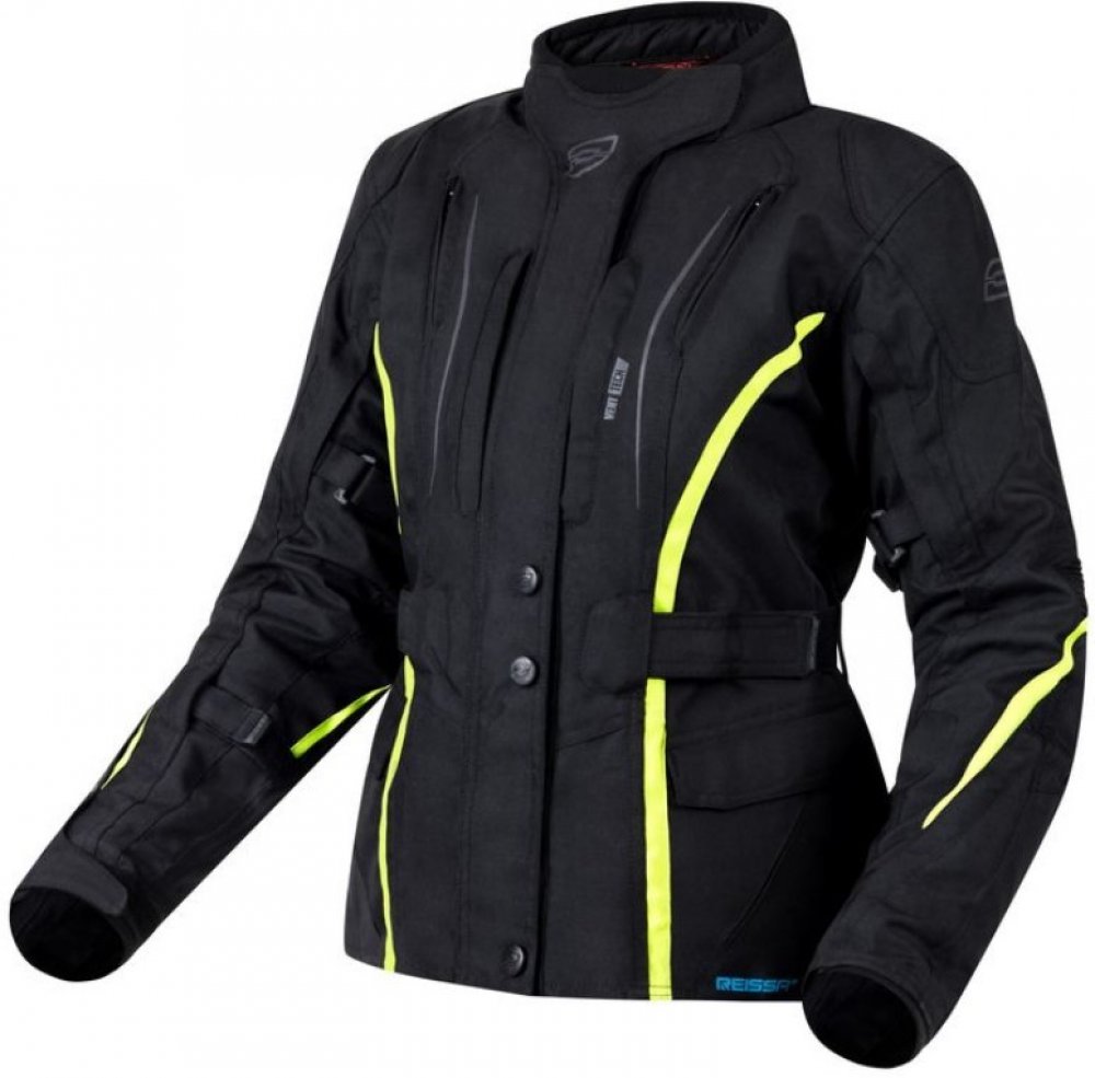 Stahovací pásky na rukávech a na bocích bundy pro perfektní dopasování.Ventilační kanály zajišťují perfektní ventilaci, a bunda je tak vhodná i pro jízdu v horkých letních dnech.