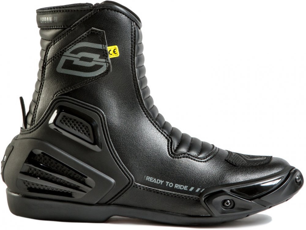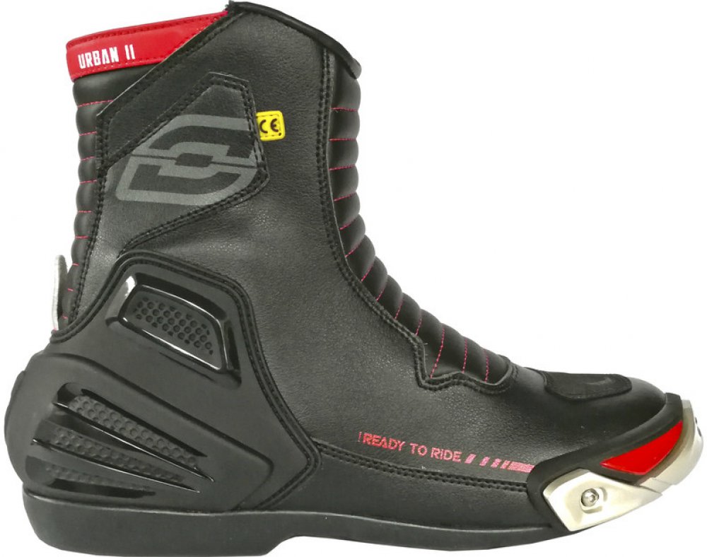 Moto boty Ozone Urban II CE se můžou pyšnit bezpečnostní certifikací dle normy EN 13634:2010, čímž splňují legislativní požadavky EU. Vysoký stupeň ochrany je vidět již na první pohled, boty disponují robustní ochranou paty a vyměnitelnými slidery. Dále mají zesílenou špičku a ochrannou vrstvu v oblasti řadičky. Použité dvojité a trojité švy zvyšují pevnost a odolnost. Z hlediska praktického použí...
