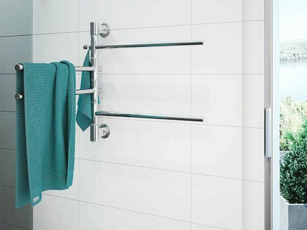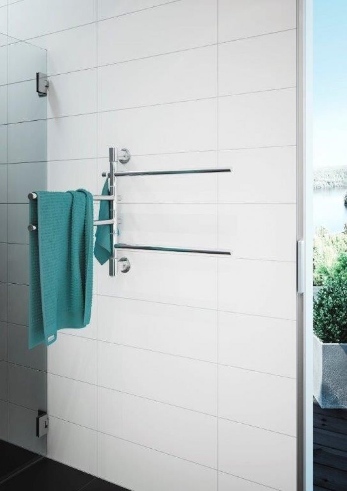 Fenix elektrický sušák, 59,5x54 cm, otočná ramena, vytápěn topným kabelem uvnitř, se skrytým elektrickým připojením, materiál kov, povrch leštěná nerez.
