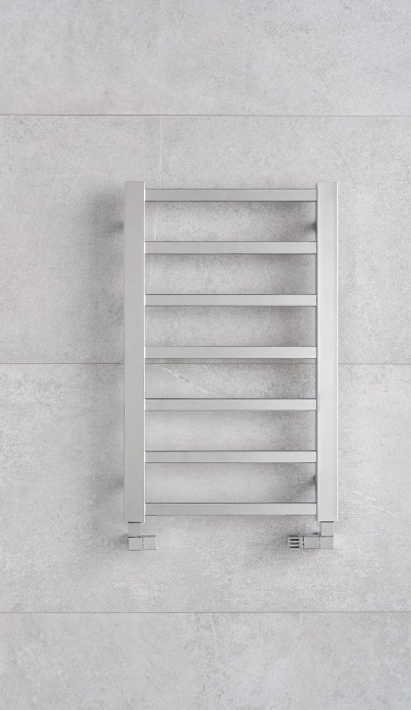 Koupelnový radiátor s obdélníkovými profily trubek a výjimečným designem.