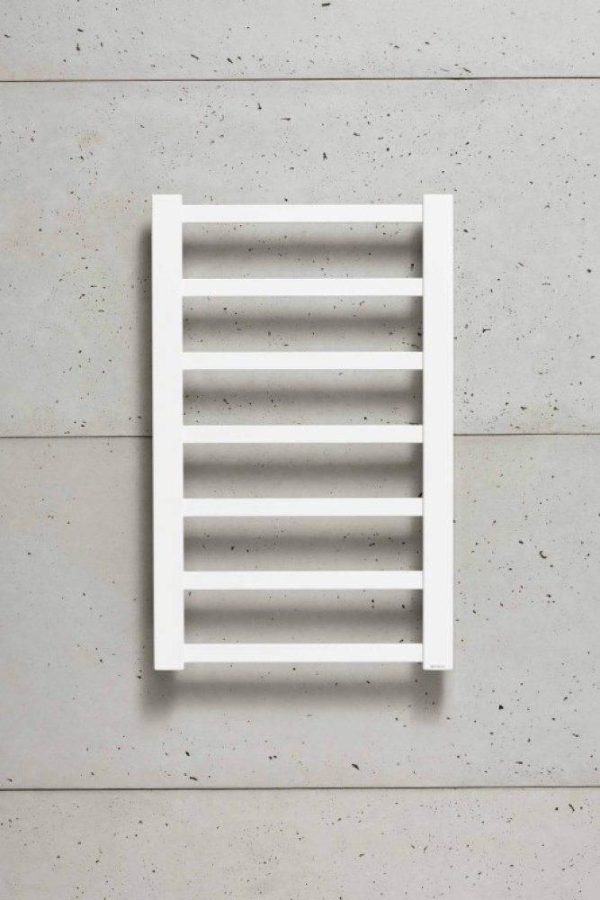 Koupelnový radiátor s obdélníkovými profily trubek a výjimečným designem.