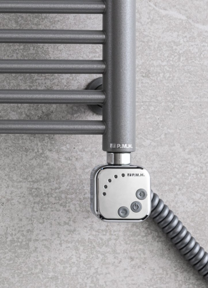 Elektrické topné těleso s termostatem umožňující nastavení teploty v rozmezí 30-60° C. Dvoustupňová ochrana proti přehřátí. Funkce proti zamrznutí tekutiny. Nízká spotřeba energie během provozu díky pokročilé elektronice. 2h nastavení max. výkonu s automatickým vrácením na původní nastavení – funkce + 2h BACK – nebo automatickým vypnutím – funkce - 2h OFF. IPx54 – ochrana proti vniknutí vody. Termostat je možné otáčet o 320 ° (snadnější montáž). Není možné kombinovat s ventilem Danfoss VHX-DUO u modelů Helios, Kronos. Nelze kombinovat s horizontálními otopnými tělesy! Topná tyč je v chromovém provedení s krouceným kabelem a výkonem 800 W.