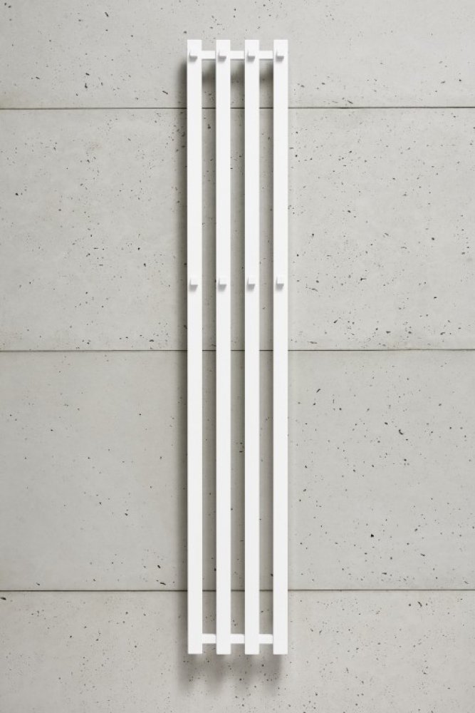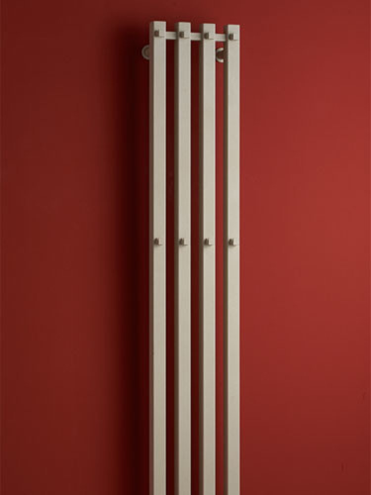 Koupelnový radiátor PLUTO P2A/2 od firmy P.M.H. barva metalická antracit RAL 7016, dvoutrubkové provedení, rozměry 105 x 1500 mm, výkon 203 W. Koupelnový radiátor PLUTO s hranatými profily trubek 35 x 35 mm patří mezi nejužší radiátory na trhu. Radiátor je doplněn o hranaté háčky ve dvou řadách pro snadné zavěšení ručníků.