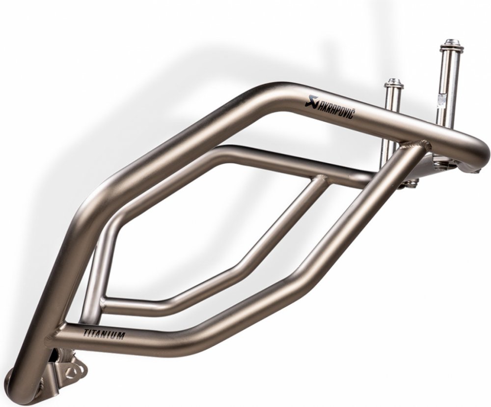 Ultralehký titanový horní padací rám Akrapovič pro BMW R1250GS.