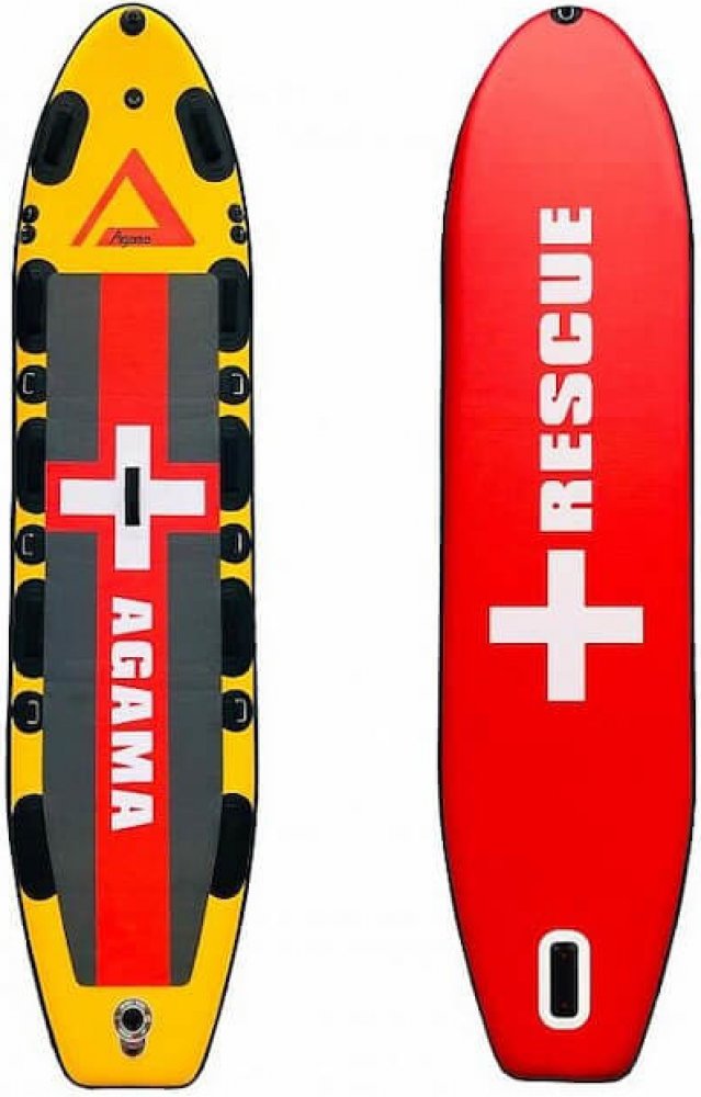 První paddle board navržený naší firmou ve spolupráci s profesionály IZS pro rychlý zásah. Vhodný jak na rychle tekoucí vody, tak na záchranu z ledu. Dvouplášťová konstrukce ve spojení s 15 cm tloušťkou zajišťuje stabilitu při každém zásahu. Do přední části možnost vpletení lana pro snadné zachycení při zásahu pod jezem. Polstrované úchyty po obvodu pro snadný transport potřebného vybavení nebo osob. Napouštěcí ventil v zadní části umožňující rychlé nafouknutí. Paddleboard je vybaven přetlakovým ventilem, který automaticky odpouští tlak nad 18 PSI.