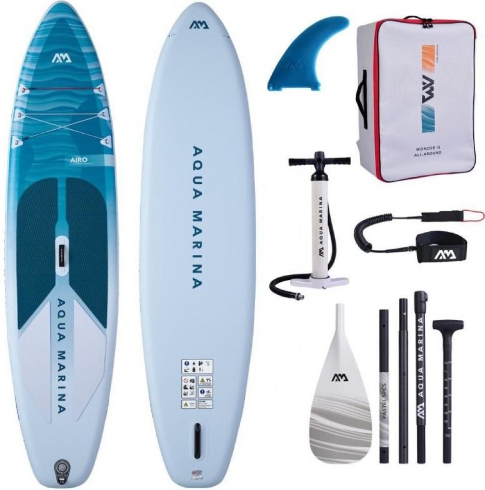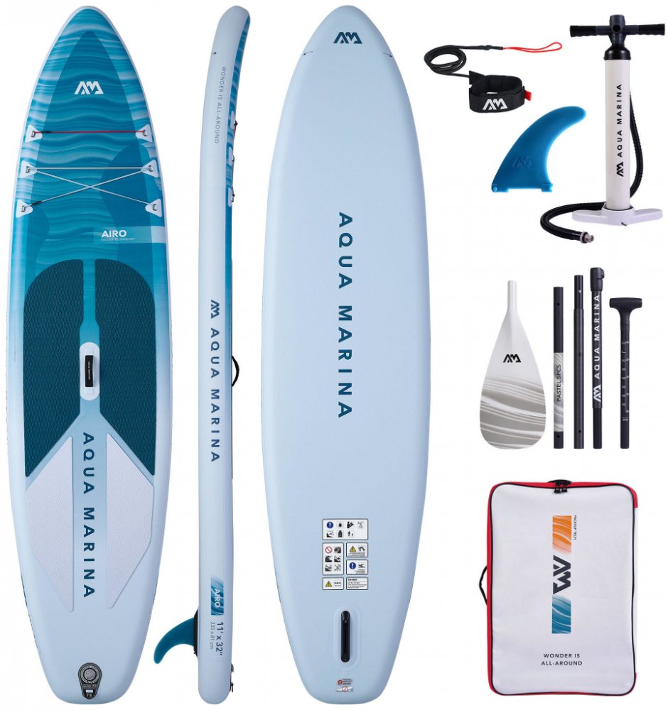 Představujeme AIRO, nejnovější lehký paddleboard od Aqua Marina. Tyto desky jsou ideální pro spontánní výlety a začátečníky a jsou vyrobeny z ekologického materiálu TPU, díky čemuž se s nimi snadno manipuluje a přepravuje. Je tak lehký, že se dá bez námahy zvednout pouze jednou rukou!Ve srovnání se standardními SUP deskami je AIRO o 23 % lehčí a o 29 % menší ve sbaleném stavu. PackSUP je váš dokonalý společník pro nenáročné cestování a pádlování. S dvoudílnou EVA podložkou, skládací ruční pumpou, pětidílným odnímatelným pádlem a o 40 % lehčí PP ploutví nabízí špičkový výkon.Náš design PicoPack™ přináší revoluci v přenosnosti optimalizací každého aspektu našeho SUP vybavení, včetně materiálů, struktury a příslušenství, čímž dramaticky snižuje hmotnost i sbalenou velikost.Připraveni vyrazit? Popadněte batoh a hurá na vodu! TECHNOLOGIE:DVOJITÝ POPRUHDesign dvojitého popruhu bungee zvyšuje rozložení hmotnosti a zajišťuje bezpečnější uchycení větších nákladů.Dvoudílná EVA PodložkaEVA podložka je rozdělena od středu. Díky tomu je skládání a rolování desky bez námahy.TECHNOLOGIE TKANÉHO MATERIÁLU AIRLITE™ TPUZažijte naši revoluční technologii tkaného materiálu AirLite™ TPU. Na rozdíl od tradičního pleteného materiálu drop-stitch, tento měnič hry snižuje hmotnost o 10 % při zachování výjimečné tuhosti desky.Tkané drop stitch jádroDruhá vrstva TPUPrvní vrstva TPU na okrajiDruhá vrstva TPU na okrajiDvoudílná EVA podložkaVENTILKvalitní gumový ventil pro prémiový vzhled a lepší vzduchotěsnost.SAFS™100% PP. O 40% lehčí než standardní středová ploutev.PICOPACK™Revoluční přenosnost dramaticky snižuje hmotnost i sbalenou velikost.