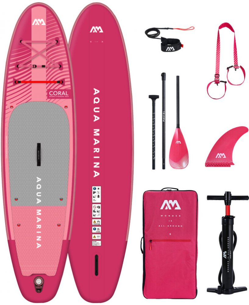 Kompletně přepracovaný velký nafukovací paddleboard CORAL z řady ALL-AROUND ADVANCED nabízí větší tuhost plováku a prémiové příslušenství. Díky svým rozměrům a barvám je CORAL ideální univerzální paddleboard pro ženy. Tlouštka 12 cm dělá paddleboard lehčí a pro ženy na vodě ovladatelnější. Příslušenství je dodáváno ve stejném barevném odstínu jako plovák. Pádlo, flosna, batoh i ramenní popruh dokonale ladí s plovákem.