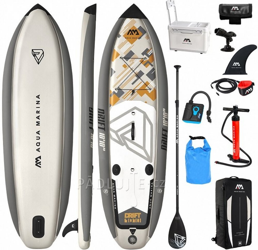 Unikátní paddleboard AQUA MARINA Drift, který ocení především zapálení rybáři AQUA MARINA Drift je unikátní paddleboard, který ocení především zapálení rybáři. Plovák je vyroben pevnou drop-stitch technologií a je vybaven extra bočnicemi pro vysokou stabilitu. Paddleboard dále disponuje stojany na rybářský prut, leashem, skládacím pádlem, odnímatelnou flosnou a držákem na pádlo. V přední části pal...