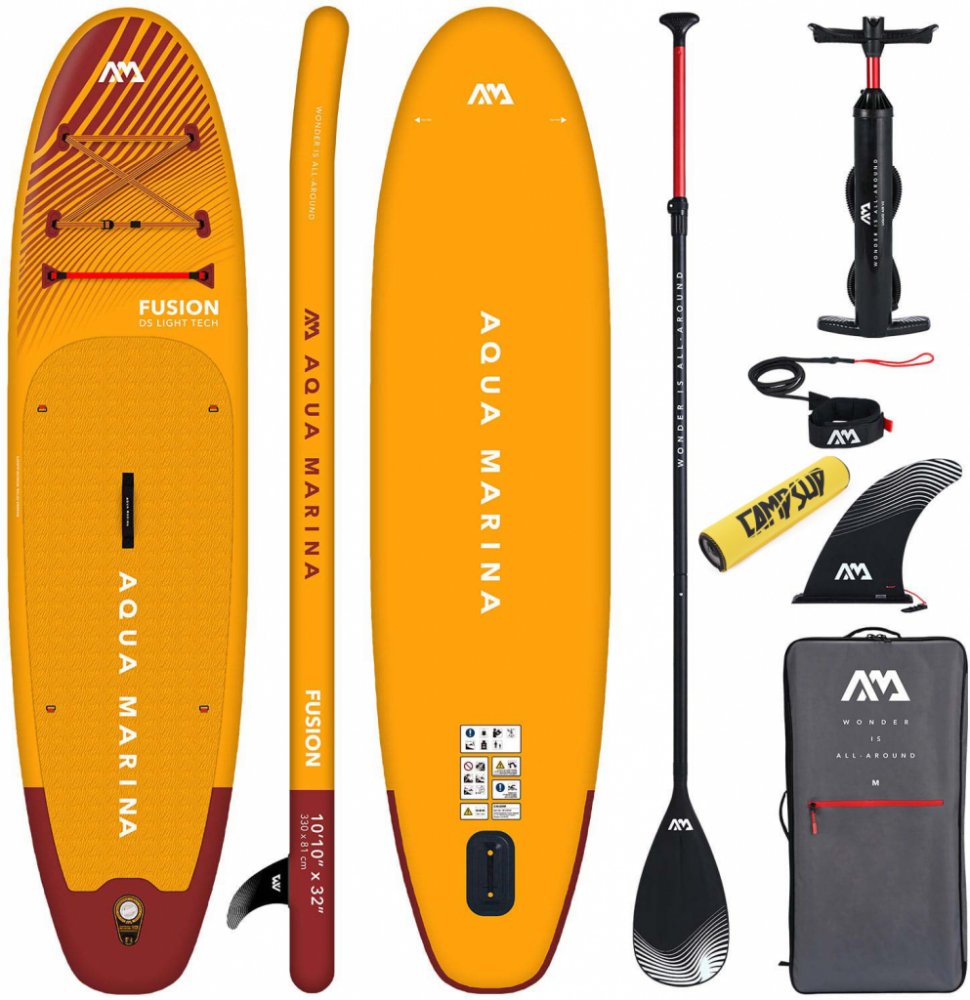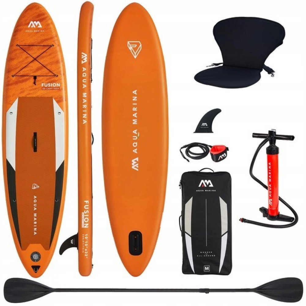 Aqua Marina Fusion 10'10" BT-23FUP SUP prkno + SOLID pádloTřída: ZačátečníkMaximální zatížení: 150 kgDélka: 330 cmŠířka: 81 cmTloušťka prkna: 15 cmDoporučený maximální tlak: 15 PSIHmotnost desky: 8,8 kgSedačka kajaku v ceně: NeNEJVĚTŠÍ PŘEDNOST UNIVERZÁLNÍHO PRKNA 2023:Prkno je vyrobeno technologií Drop Stitch Light, je lehké a odolné proti poškození.Vrstvy prkna spojené technologií HF Wealding a ...