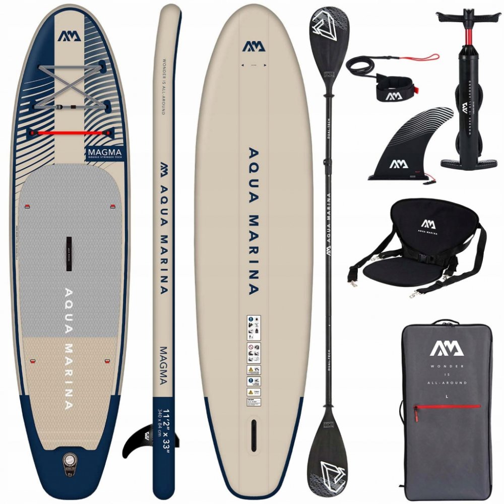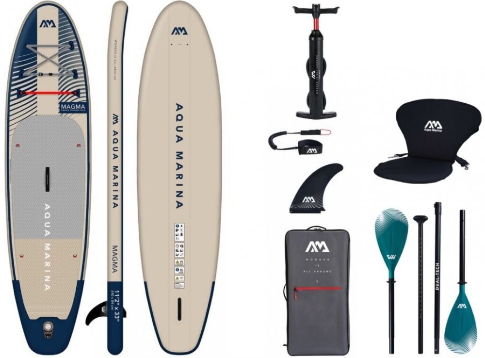 Novinkou celé řady ALL-AROUND ADVANCED je přepracovaný tvar paddleboardu a vylepšená technologie. Model MAGMA je vyroben technologií DOUBLE STRINGER TECHNOLOGY, je vyztužen dvěma podélnými pásy PVC, které zajišťují větší pevnost a tím i lepší responzivitu paddleboardu. Oproti řadě ALL-AROUND má trochu štíhlejší tvar, který paddleboardu umožňuje rychlejší jízdu. Stabilita paddleboardu je stále velmi dobrá a tak je i tento paddleboard vhodný nejen pro pokročilejší jezdce, ale i pro úplné začátečníky.
