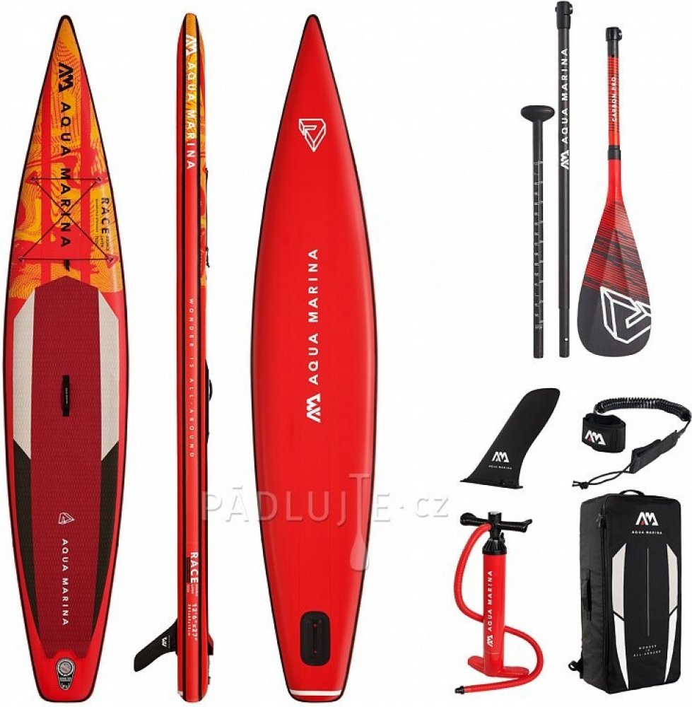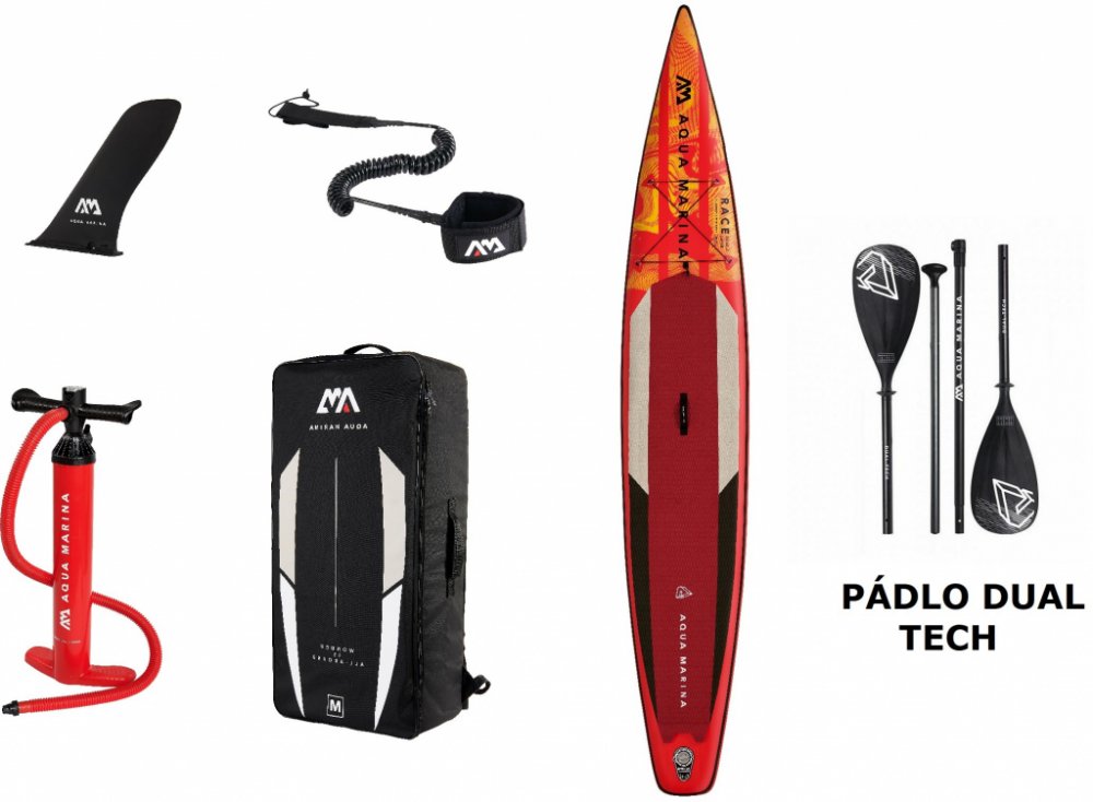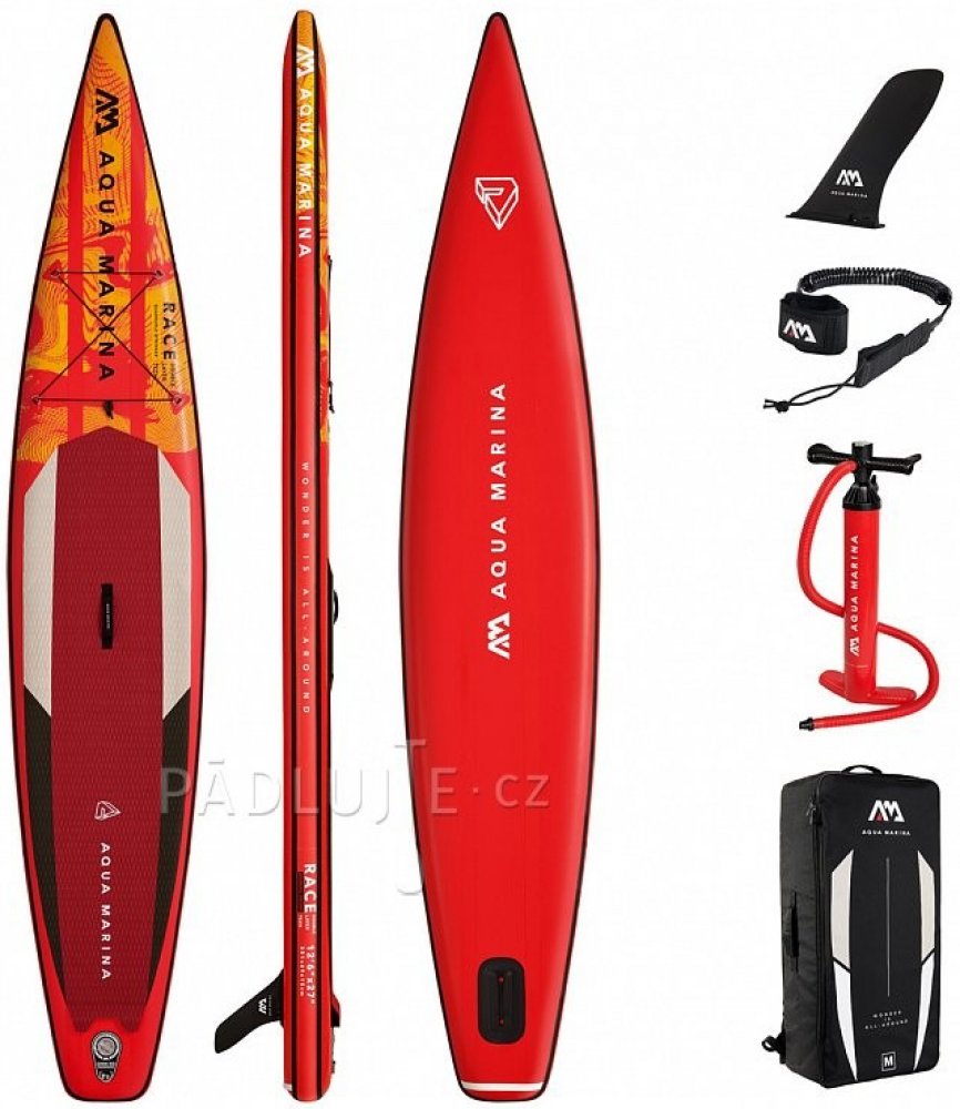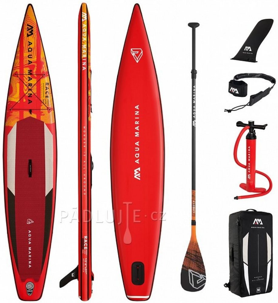 Nafukovací paddleboard AQUA MARINA Race je plovák určený zejména zkušenějším, sportovně založeným jezdcům, kteří od svého paddleboardu vyžadují rychlost a skvělý skluz. Díky šířce 27 palců je tento paddleboard stabilní i v rozvlněných podmínkách. O extra tuhost a výdrž se stará dvouvrstvá technologie "Lightweight Double Layer" spolu s technologií "Quadruple Stringer", tedy se čtyřmi extra výztuhami rozmístěných podélně na plováku. To dovoluje plovák nafouknout až na 18 PSI, což přináší vysokou tuhost blížící se pevným paddleboardům.
