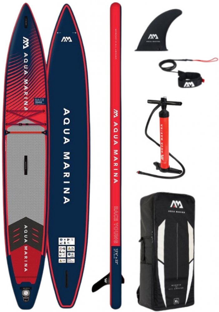 AQUA MARINA Race Young 12'6 22" je nafukovací paddleboard z kategorie Race a je určen zejména pro výkonnostní a sportovní pádlování juniorů. Jeho štíhlý design je přizpůsobený pro nižší váhy a může se pochlubit užší zádí a aerodynamickým obrysem, zvyšuje maximální rychlost a optimalizuje účinnost skluzu. Díky velkému vztlaku v kombinaci s ultra tuhou technologií Double Layer nabízí tato prkna bezkonkurenční tuhost a odezvu na vodě. Paddleboard i s veškerým příslušenstvím zabalíte do transportního batohu, který pohodlně unesete na zádech.Plovák má délku 381 cm, šířku 56 cm, výšku 12 cm, objem 220 l a nosnost 70 kg.Paddleboard je v originálním balení dodáván bez pádla, a proto jsme vytvořili dvě varianty – jednu bez pádla a druhou s pádlem. Pokud si vyberete variantu „s pádlem“ přidáváme k paddleboardu 2-dílné nastavitelné karbonové pádlo AQUA MARINA CARBON YOUNG za zvýhodněnou cenu.