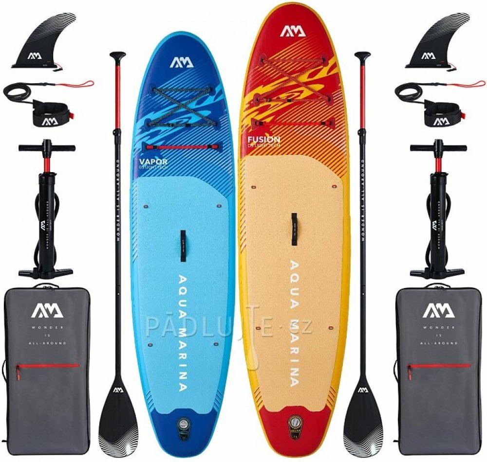 Pro rodinu je jeden plovák málo. Nikdo totiž nechce sedět na břehu a čekat až na něj přijde řada. Touto výhodnou sadu získáte dva paddleboardy – větší AQUA MARINA FUSION 10'10 s nosností až 150 kg a druhý menší paddleboard AQUA MARINA VAPOR 10'4