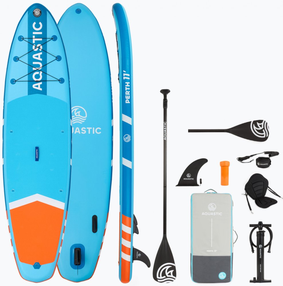 Pneumatická deska SUP Aquastic Perth 11” je univerzální model, ideální jak pro začátečníky, tak pro zkušenější uživatele. Díky pokročilé technologii Dropstitch tato deska spojuje odolnost, stabilitu a pohodlí, což umožňuje zkoumat různé vodní plochy . Rychlá příprava k použití, trvající pouhých 7 minut, z ní činí vynikající volbu pro osoby bez specializovaného tréninku. Za udržení vysokého tlaku v desce, který činí 15 PSI , odpovídá pokročilá technologie Dropstitch . Tato technologie spočívá v propojení stovek tisíc vláken, která spojují horní a dolní vrstvu desky, což zajišťuje neobyčejnou odolnost a tuhost . Díky tomu deska může udržovat stálý tlak, což je klíčové pro stabilitu a výkon při plavání. Deska SUP Aquastic Perth 11” byla vyrobena z nejkvalitnějších materiálů, což jí zajišťuje výjimečnou trvanlivost. Vnější povrch se skládá z vícestupňového PVC s různou tloušťkou, navíc zesíleného na okrajích, což zaručuje odolnost proti mechanickému poškození. Na horní části desky je umístěna protiskluzová pěna EVA , která zvyšuje bezpečnost a komfort používání, minimalizující riziko sklouznutí při pádlování. Deska SUP Aquastic Perth 11” je ideálním řešením pro osoby milující cestování , protože váží pouhých 10,5 kg . Díky možnosti vypuštění vzduchu se deska stává kompaktní a snadno sbalitelnou , což umožňuje její přepravu v kufru auta. To je obzvlášť výhodné pro ty, kteří chtějí zkoumat různé vodní plochy. Po vypuštění vzduchu má deska malé rozměry, a přiložený batoh usnadňuje transport. Regulovatelné pádlo 3-dílné o délce 170-220 cm s funkcí 2v1 zajišťuje komfort používání a přizpůsobení individuálním potřebám. Pádlo je vyrobeno z lehkého, ale odolného materiálu, což usnadňuje manévrování na vodě. Díky možnosti regulace délky lze pádlo ideálně přizpůsobit výšce uživatele, což zvyšuje efektivitu a komfort pádlování. Kromě pádla, kajakového sedadla a batohu obsahuje sada také další příslušenství. Dvou směrová pumpa , která umožňuje rychlé a snadné nafouknutí desky na požadovaný tlak. Leash , zajišťující dodatečnou bezpečnost. Oprava sada a servisní klíč na ventil, které jsou neocenitelné v případě drobných poškození a potřeb údržby. Odnímatelný stabilizátor , který zvyšuje stabilitu desky a usnadňuje manévrování. Návod , který obsahuje cenné tipy pro obsluhu desky.