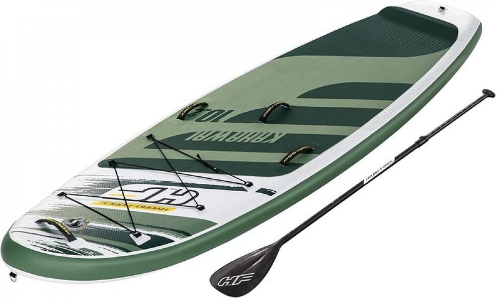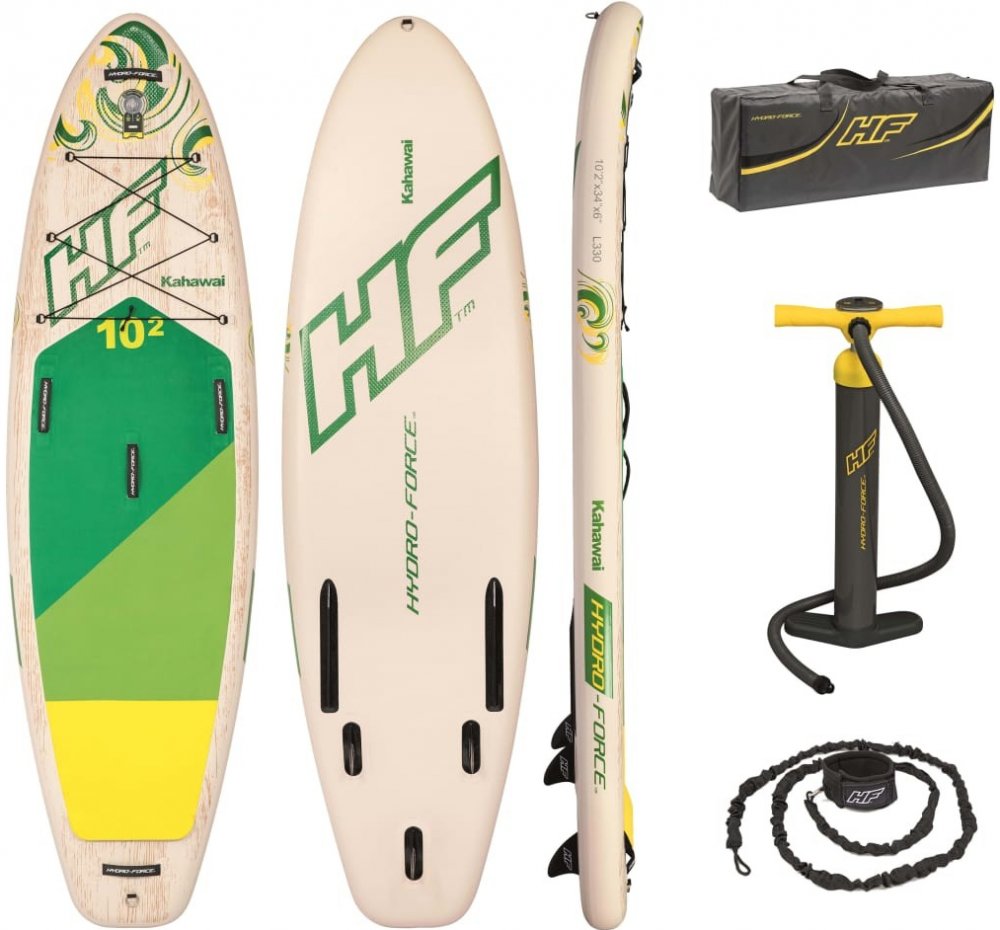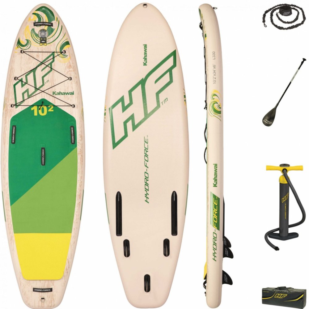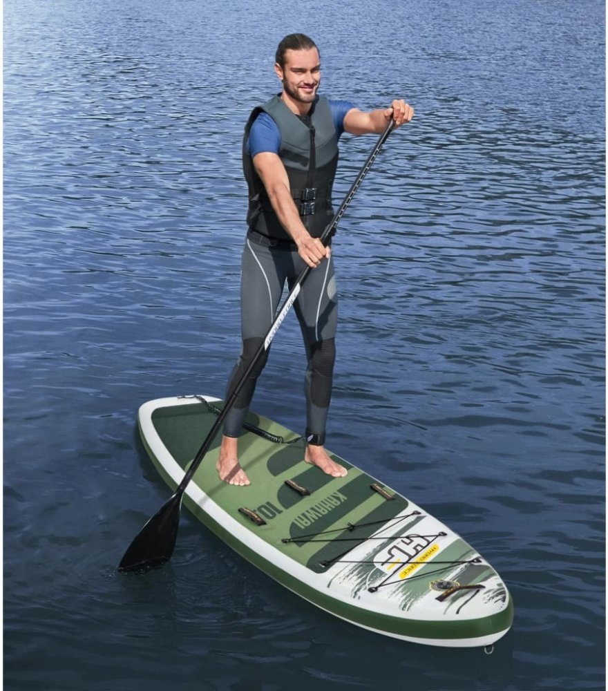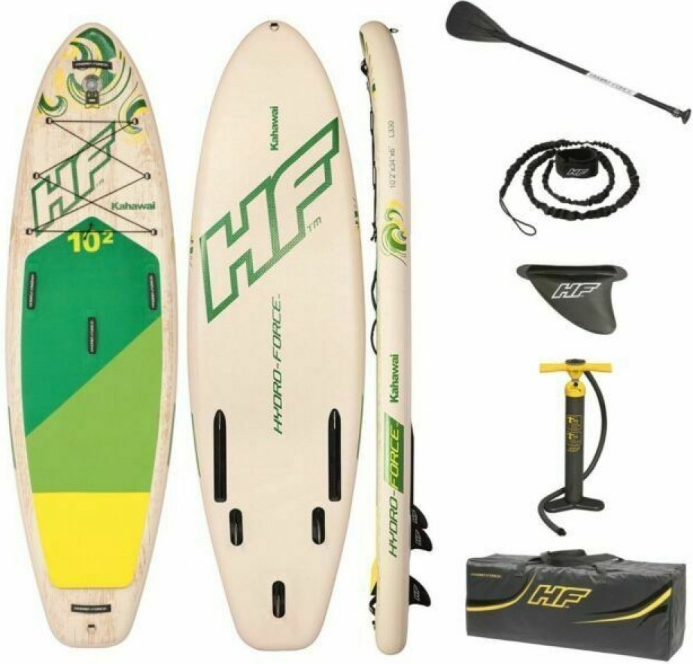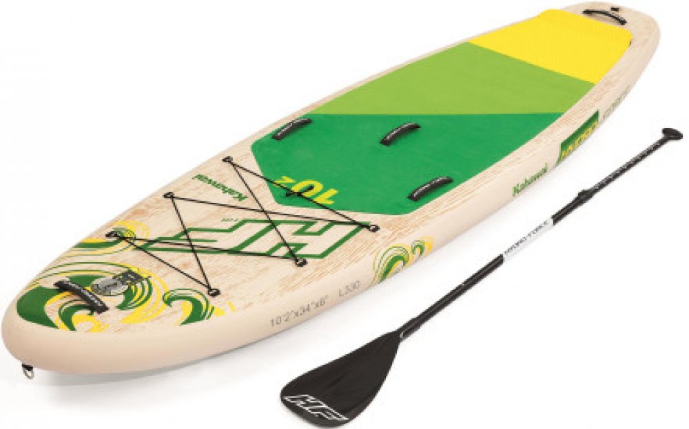 Tento nafukovací paddleboard Bestway Hydro-Force Kahawai Set bude ideální pro rekreační výlet v bazénu nebo na klidném jezeře. Paddleboard lze rychle nafouknout pomocí přiložené ruční pumpy. Ideální pro dlouhé a bezpečné výlety po vodě.