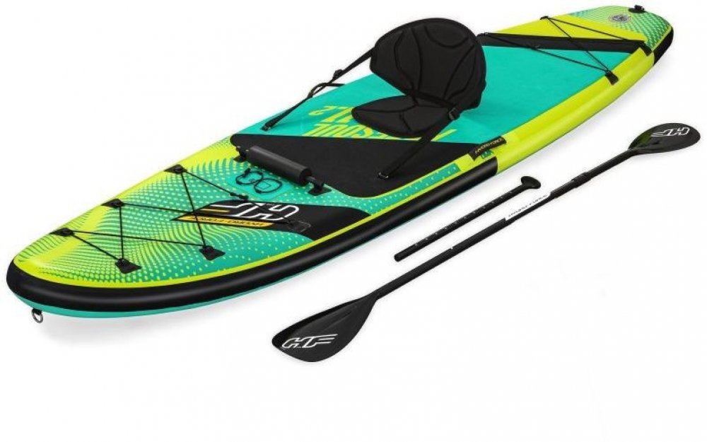 Surfovací prkno Bestway má pohodlné sedadlo s opěradlem. Součástí balení je také robustní pádlo, ruční pumpa a opravná sada. Jedná se o nezbytné zavazadlo na dovolenou pro všechny milovníky dlouhých cest po vodních plochách. Pokud dáváte přednost aktivnímu odpočinku před lenošením na pláži, je tento produkt určen právě pro vás! Nafukovací deska je ideální pro jízdu na kajaku a jógu.