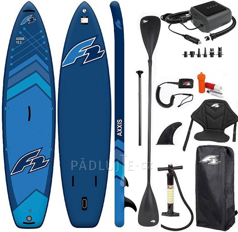 Tato sada navíc obsahuje elektrickou pumpu Základní model F2 AXXIS SMU 12‘2 COMBO NAVY BLUE, který v sobě spojuje paddleboard a kajak. Dodáván s kajakovou sedačkou i kombinovaným 4-dílným SUP/KAJAK pádlem.