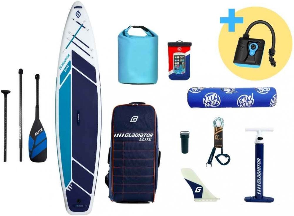 V balení plováků ELITE najdete velmi lehké 100% karbonové 3-dílné nastavitelné pádlo. K plovákům je dodávána sklolaminátová ploutvička. V balení je kvalitní vysokotlaká pumpa, luxusní batoh s kolečky a pojistný řemínek.