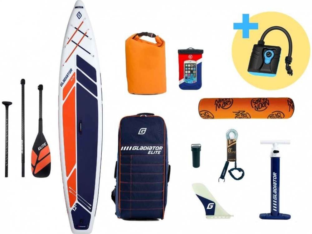 Série GLADIATOR ELITE je vrcholnou řadou značky GLADIATOR. Paddleboardy ELITE jsou určeny náročným zákazníkům hledající velmi lehké a přitom extrémně pevné plováky, které lze tlakovat až na 26 PSI díky moderní MACHIN WEAVE technologií. V balení plováků ELITE najdete velmi lehké 100% karbonové 3-dílné nastavitelné pádlo. K plovákům je dodávána elastická ploutvička. V balení je kvalitní vysokotlaká pumpa italské firmy BRAVO, luxusní batoh s kolečky a pojistný řemínek.