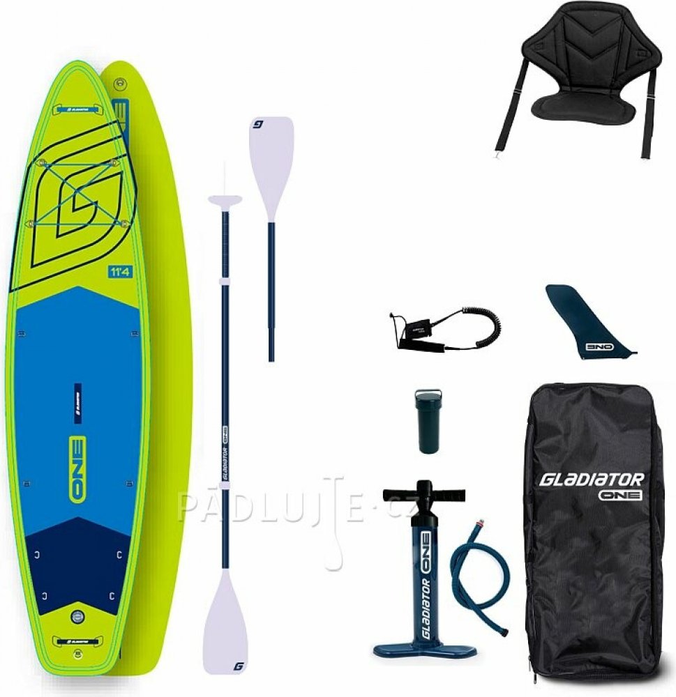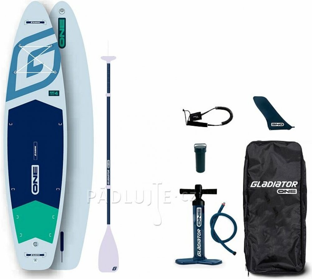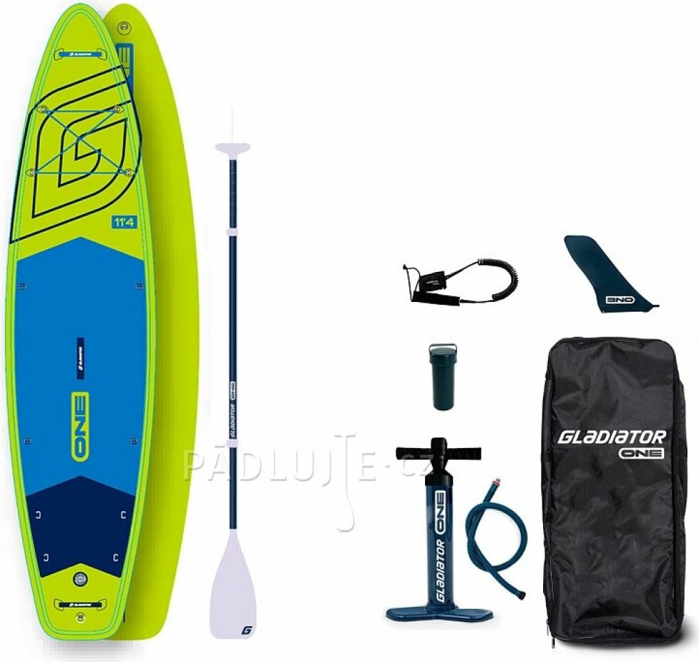 GLADIATOR ONE 11'4 11'4''x32''x5'' je stabilním nafukovacím SUP plovákem pro použití na delší vyjížďky a pohodovou sportovní jízdu. Jedná se o základní model paddleboardu značky Gladiator vyrobený technologií, díky níž vydrží tlakování až na 18 PSI.