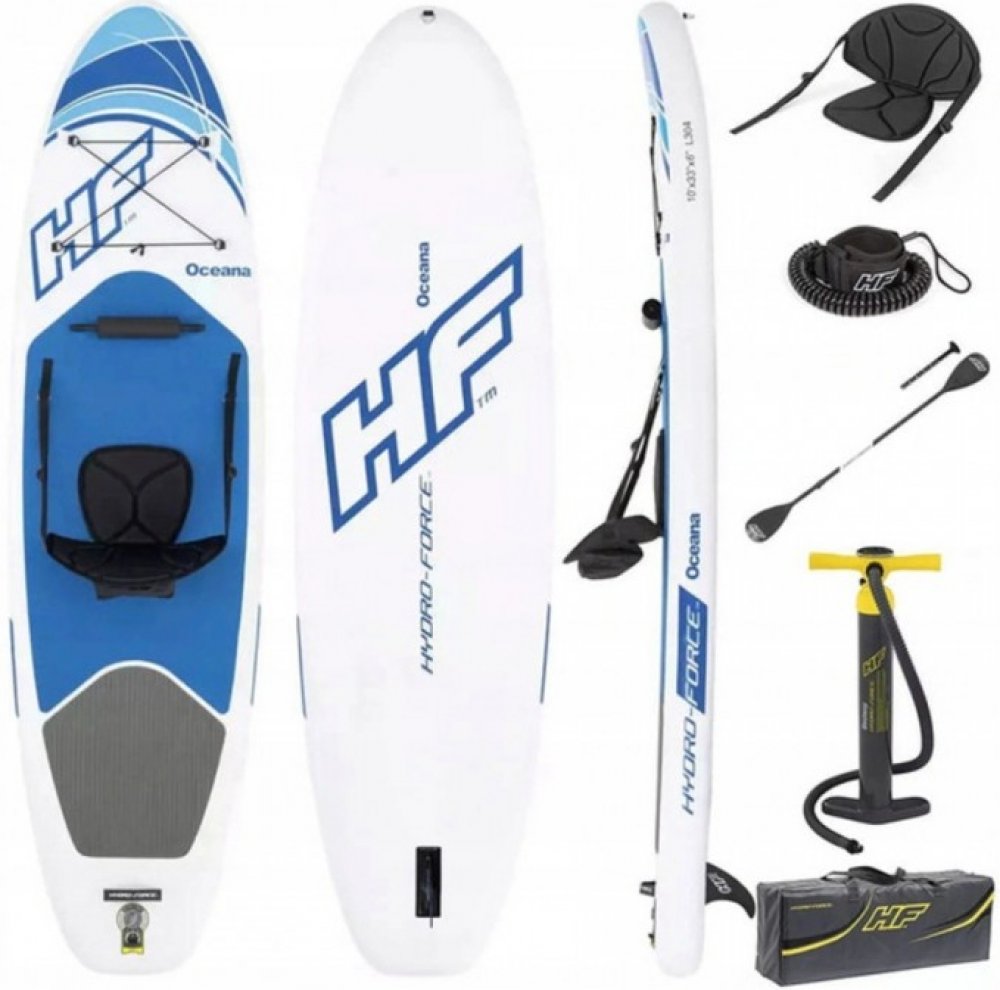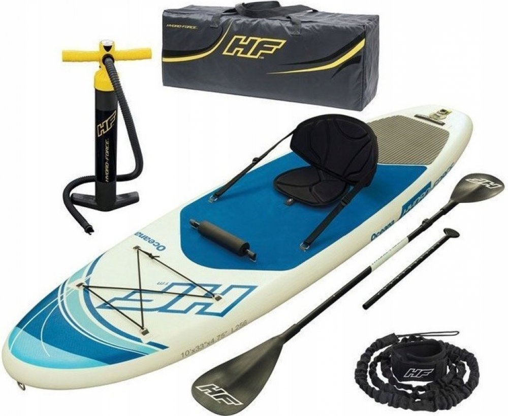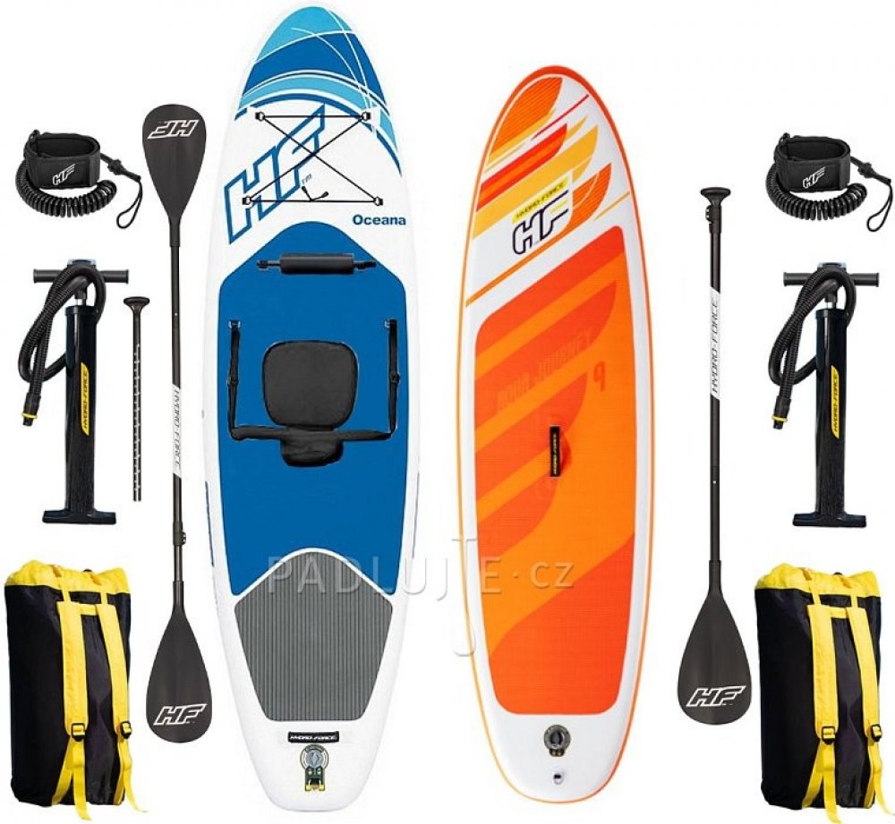 Jeden paddleboard pro rodinu rozhodně nestačí. Nikdo totiž nechce sedět na břehu a čekat až na něj přijde řada. Touto výhodnou sadu získáte dva paddleboardy – větší HYDRO FORCE OCEANA 10´ COMBO s nosnotí až 130 kg a druhý JUNIORSKÝ paddleboard HYDRO FORCE AQUA JOURNEY 9Jedná se o sadu dvou paddleboardů s kompletní vybavením viz detail každého plováku.Paddleboardy mají na palubě měkkou pěnovou podložku, vyrobenou z nesmekavého a příjemného materiálu pro pohodlné stání, ke kterému je původně určen. Doplňková sedačka není určena pro zatížení plnou vahou a pádlování se zapřením jako na kajaku, slouží pouze jako vymezující opěrný bod pro záda a váha těžiště má být rozložena uprostřed sedačky.