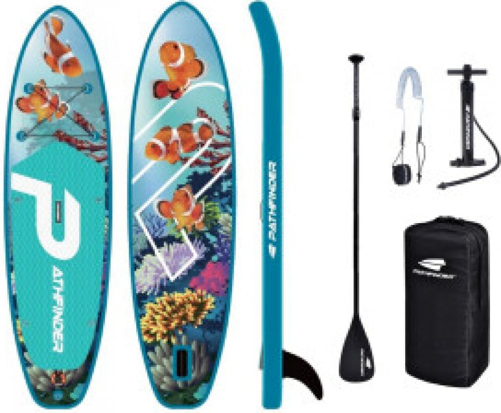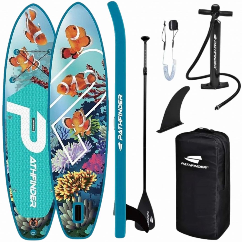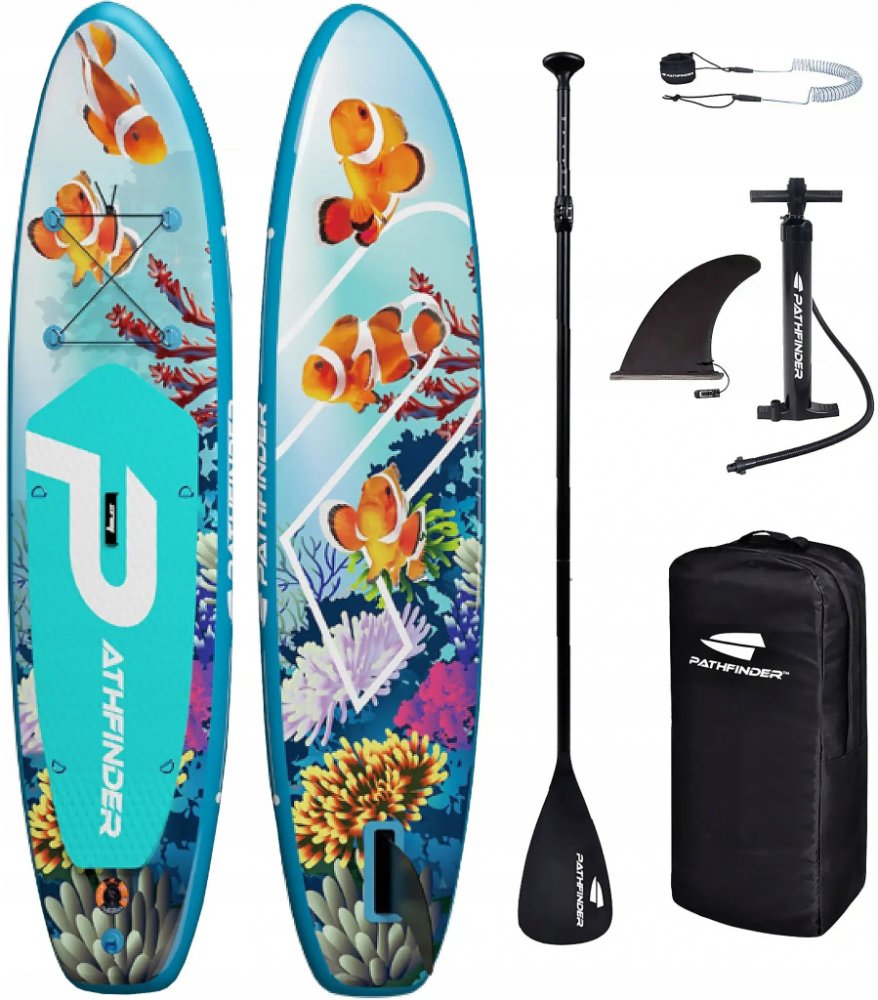 paddleboard PATHFINDER Marine Clown 10'2'' Pathfinder PRO 10'2" v atraktivním provedení Marine Clown je ideální volbou pro jezdce hledající stabilitu, všestrannost a skvělý poměr mezi výkonem a ovladatelností. Díky svým rozměrům 310 × 81 × 15 cm nabízí dostatečnou stabilitu pro pohodlnou jízdu jak pro začátečníky, tak pro pokročilé paddleboardisty. Klíčové vlastnosti: Univerzální all-round tvar – Skvělá stabilita a obratnost na klidných vodách i menších vlnách. Odolná konstrukce – Pevný drop-stitch materiál zaručuje dlouhou životnost. Frézovaný protiskluzový EVA pad – Komfortní a bezpečný grip pro lepší kontrolu nad boardem. Odnímatelná ploutev – Zlepšuje směrovou stabilitu a umožňuje snadný transport. Elastické lanko na přídi – Praktický úložný prostor pro zavazadla nebo výbavu. Pohodlné madlo pro přenášení – Snadná manipulace na břehu. Ocelová očka- možnost připojení kajakové sedačky (sedačka není součástí setu) Pro koho je paddleboard vhodný? Začátečníci i pokročilí jezdci hledající univerzální paddleboard. Jezdec do 120 kg – ideální pro jednoho dospělého nebo dospělého s dítětem. Vhodný na jezera, klidné řeky i mořské pobřeží s menšími vlnami. Technické specifikace: Délka: 10"2' (310 cm) Šířka: 32" (81 cm) Tloušťka: 6'' (15 cm) Tento paddleboard vyniká nejen svou funkčností, ale i stylovým designem s motivem Flamingo Blue, který na vodě rozhodně upoutá pozornost. Skvělá volba pro každého, kdo hledá zábavu, sportovní vyžití a pohodlné objevování vodních ploch.