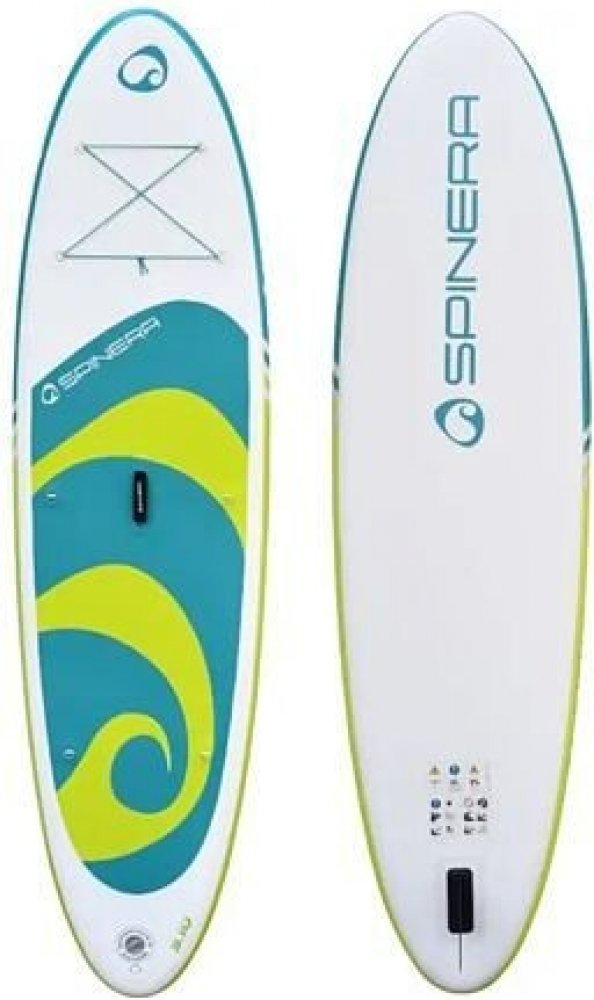 paddleboard SPINERA Classic 9'10''x30''x6'' combo verze Velmi lehký nafukovací paddleboard od německé značky SPINERA je ideálním plovákem pro jezdce do 75kg. Jedná se o stabilní paddleboard menších rozměrů, který je vhodný zejména pro ženy a lehčí jezdce, který je v základním setu vybaven Combo pádlem (kajak i paddleboard) a kajakovou sedačkou. Paddleboard je vyroben silnou jednovrstvou drop-stitch technologií o vysoké gramáži, která dělá konstrukci plováku po nafouknutí tuhou, odolnou a lehkou. Vlastnosti: Plovák je opatřen čtyřmi D-ringy, ke kterým je možné připnout kajakovou sedačku. Snadno a rychle tak proměníte Váš paddleboard v pohodlný kajak. Flexibilní lanka na plováku, díky kterým si na paddleboard můžete uchytit osobní věci. Pohodlné centrální madlo, které usnadňuje transport nafouknutého paddleboardu. Protiskluzová nášlapná vrstva z pohodlné EVA pěny pro snadnou ovladatelnost paddleboardu a bezpečí. Jedna středová flosna, kterou snadno upevníte pomocí jednoduchého slide-in systému. Rozměry: Délka: 9'10" / 300cm Šířka: 30" / 76cm Tloušťka: 6" / 15cm