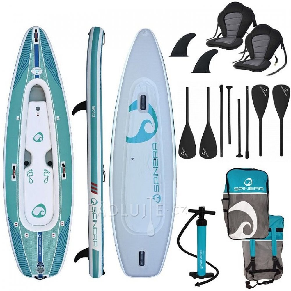 Spinera SupKayak SK 12, 12'0 - 365x98x20 cm, určen pro 2 osoby, dvoj-komorová konstrukce: 20cm HDDS - High Density Drop Stitch + 8 cm vysoká podlážka odnímatelná/lze použít jako Bodyboard, 4x D-Ring, váha: 13,2 kg (plovák) Max. tlak 8psi - 0,55bar