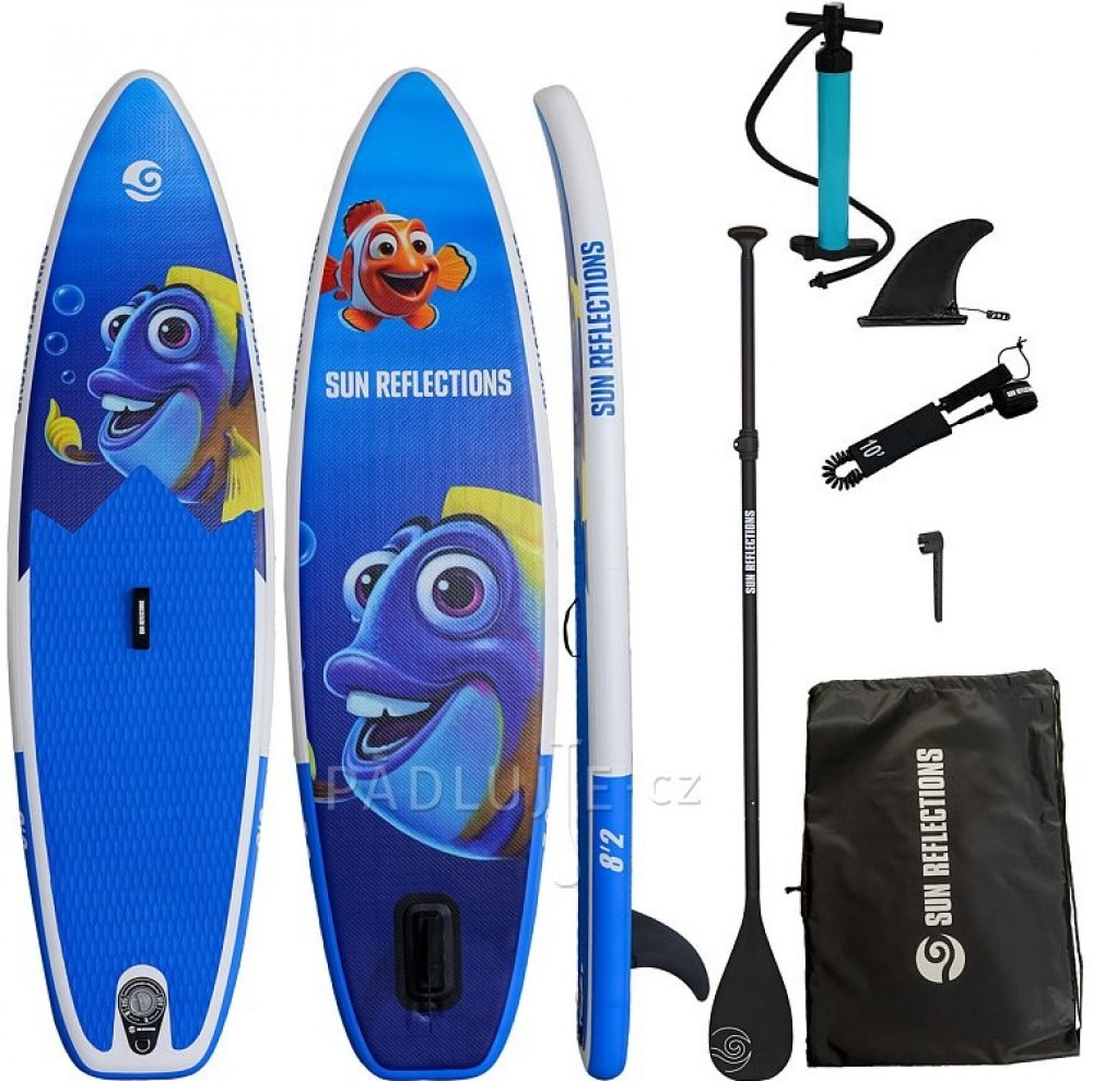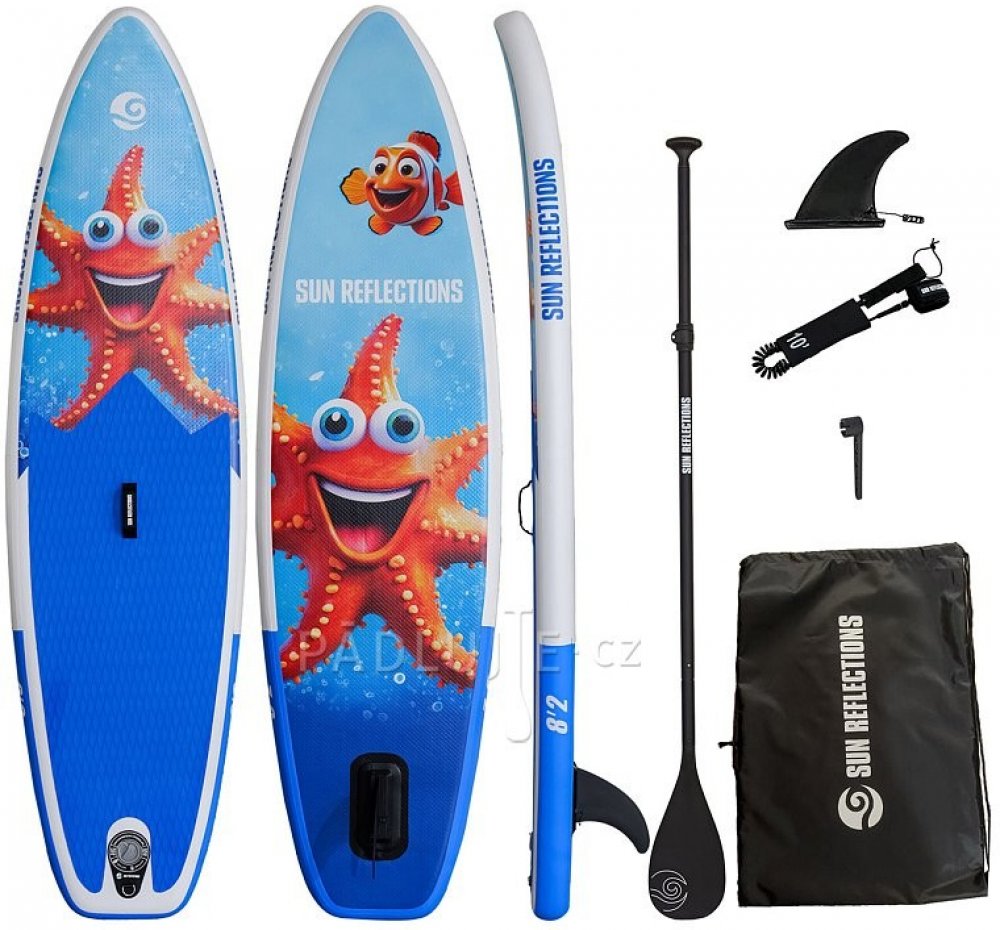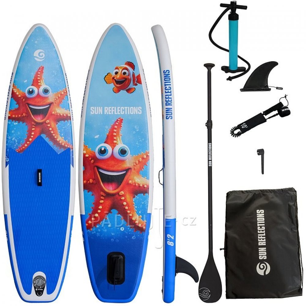 SUN REFLECTIONS 8'2'' je dětský paddleboard, který je postaven tak, aby jej mohli nejmladší paddleboardisté nejen sami ovládat, ale i sbalit a odnést. Je velmi lehký. Nafukovací paddleboard (SUP), vyrobený DROP-STITCH technologií je vybaven novým dětským pádlem.