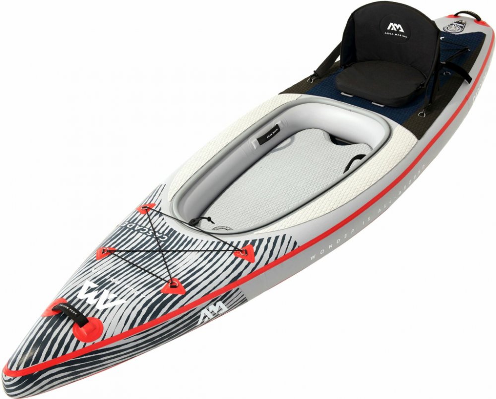S modelem Aqua Marina CASCADE 11'2” dostane vaše dobrodružství na vodě nový rozměr. Kombinuje v sobě zábavu na paddleboardu s přednostmi kajaku. Při své šířce 35 palců je tento hybrid SUP kajak velmi stabilní. Jeho tloušťka 8 palců umožňuje maximalizovat objem, který vyhovuje rodinným potřebám i těm, kteří s sebou vozí velké množství vybavení potřebné pro dlouhé vyjížďky. Jedinečná konstrukce kokpitu umožňuje jízdu vysokou rychlostí. Celá paluba s hluboce drážkovanou podložkou pod nohy z materiálu EVA zajišťuje neklouzavý a pohodlný zážitek při pádlování vestoje.