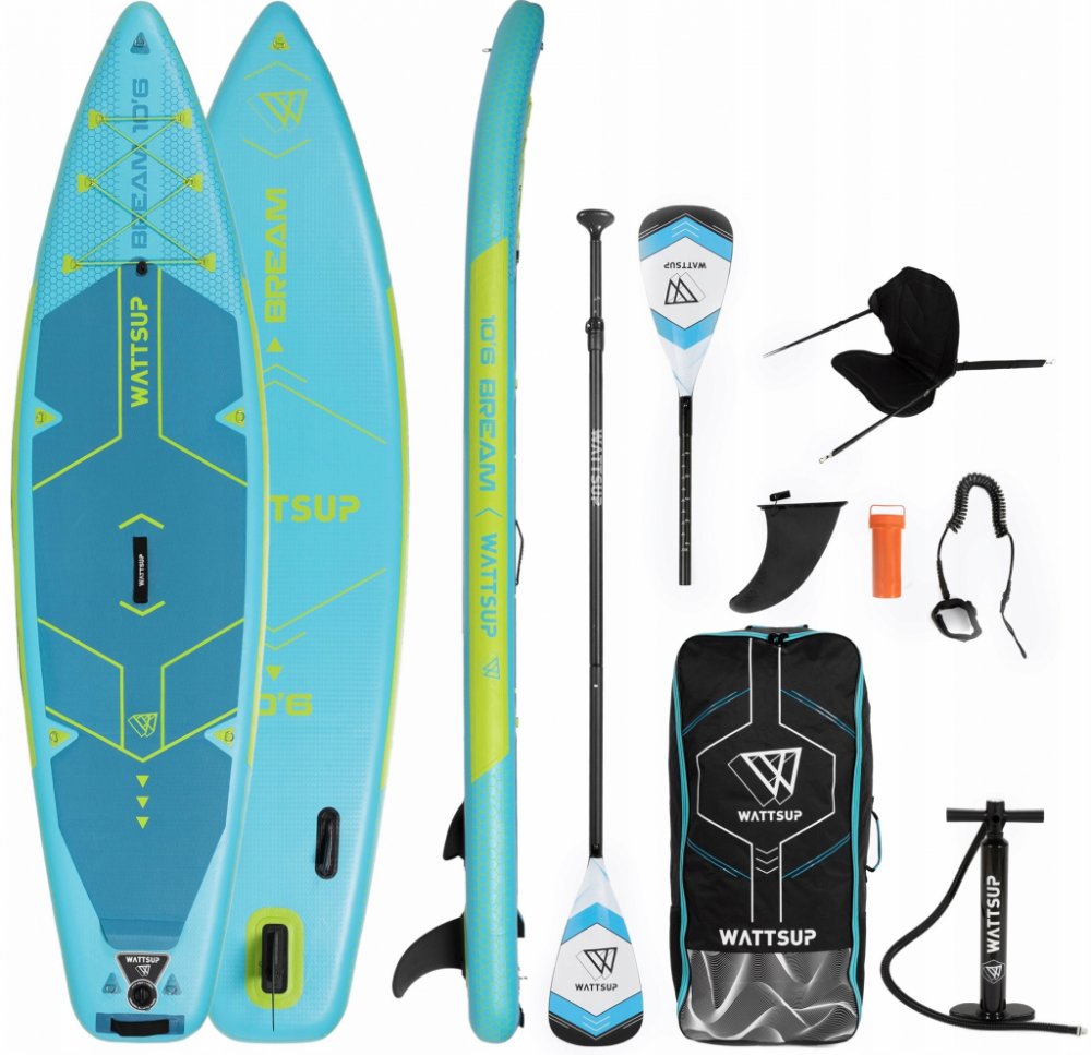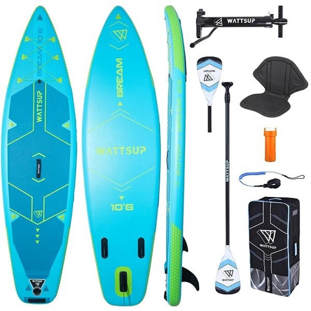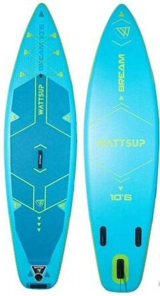 Paddleboard Wattsup Bream 10'6 ComboUniverzální allround paddleboard od francouzské značky Wattsup Bream 10'6 Combo má šířku 32”, což představuje 81 cm, a na vodě je příjemně stabilní. Jízdu na něm zvládne i úplný začátečník, ale skvěle si na něm zapádluje i zkušený paddleboardista. Nosnost paddleboardu Wattsup Bream 10'6 Combo je 135 kg a je vhodná i jako rodinná deska, na které si pohodlně zapádluje nejtěžší člen domácnosti i ten nejlehčí. Na měkké EVA pěně si nezničíš plavky a její protiskluzový povrch se postará o bezpečnost nejen tebe, ale také posádky, kterou budeš vézt.Nafukovací paddleboard Wattsup Bream 10'6 Combo je jako stvořený pro radovánky na jakémkoli typu vody. Zabav se s děckami na klidné hladině jezera za domem. Vyvětrej si hlavu při splavu řeky, když budeš na paddleboardu o samotě. S paddlebordem Wattsup Bream 10'6 Combo se nebudeš nudit ani na dovolené u moře. S 8,1 kg paddlebordem se snadno cestuje a díky zúžené jemně zdvižené špičce s ním překonáš i menší vlny. Když se zvedne vítr, nebo už nebudeš vládat pádlovat ve stoje, na paddleboard jednoduše uchytíš kajakovou sedačku pomocí karabinek.Novinka roku 2022 Wattsup Bream 10'6 Combo už na první pohled zaujme svými rozměry o délce 320 cm a šířce 81 cm. Allround paddleboard má příjemné zúžené křivky směrem ke špičce, což mu dodává skvělé jízdní vlastnosti, jako je držení směru a schopnost jet rychleji. Samozřejmostí je také skvělá výbava desky. Na paddleboardu najdeš bungee lano, pod které uchytíš vše co na svém výletě budeš potřebovat, uprostřed se nachází neoprenová rukojeť, pomocí které svůj paddleboard bez problémů odvezeš k vodě. Součástí paddleboardu jsou i integrovaná kovová očka. D-ringy, k uchycení kajakové sedačky, pojistného popruhu nebo k ukotvení desky o molo.Rozměry: 320 cm x 81 cm x 15 cmNosnost: 135 kg