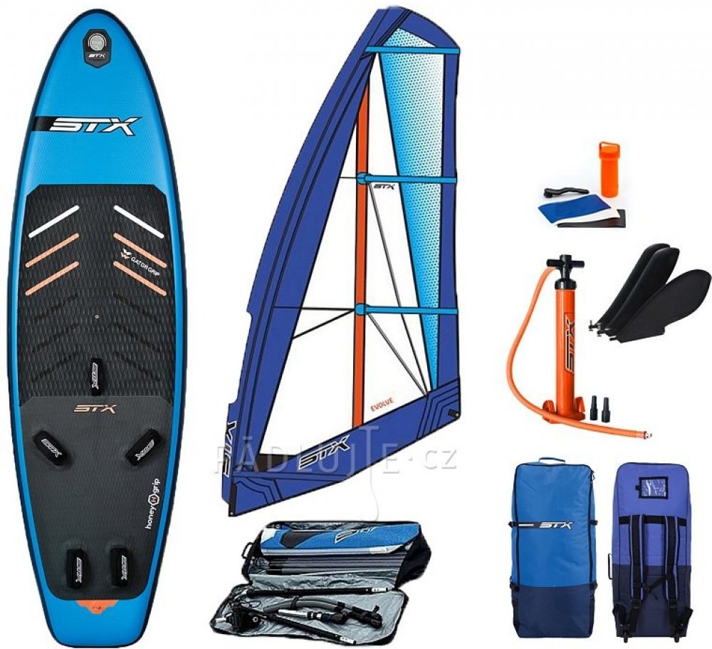 Plovák STX iWindsurf 280 RS je nový koncept windsurfového prkna pro začátečníky a středně pokročilé. Díky nafukovací technologii ho snadno zabalíte do batohu a naložíte do běžného vozu bez nutnosti vozit na střeše zahrádku. Další výhodou je pevnost. U tohoto plováku nikdy neulomíte špičku tak, jak je zvykem u běžných ws prken.