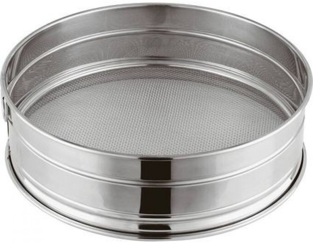 Nerezové síto o průměru 22 cm od italského výrobce PADERNO.Zachytí hrudky mouky a cukru a umožňuje připravit ty nejjemnější pyré.Křížový vzor kombinuje rychlost a efektivitu pro důkladné prosévání.Pomáhá provzdušňovat mouku, dodává jí větší objem a zajišťuje jednotnou strukturu pečiva.Dále umožňuje dělat nejjemnější sladké polevy na dorty a dezerty.20 ok na 2,5 cm2 síta.Možno mýt v myčce.