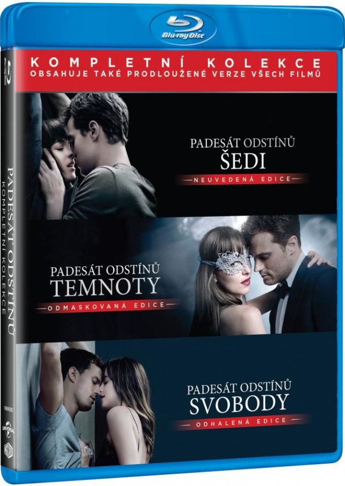 BLU-RAY kolekce Padesát odstínů obsahuje filmy: Padesát odstínů šedi (2 verze filmu), Padesát odstínů temnoty (2 verze filmu), Padesát odstínů svobody (2 verze filmu). Český dabing. Padesát odstínů šedi (BLU-RAY)