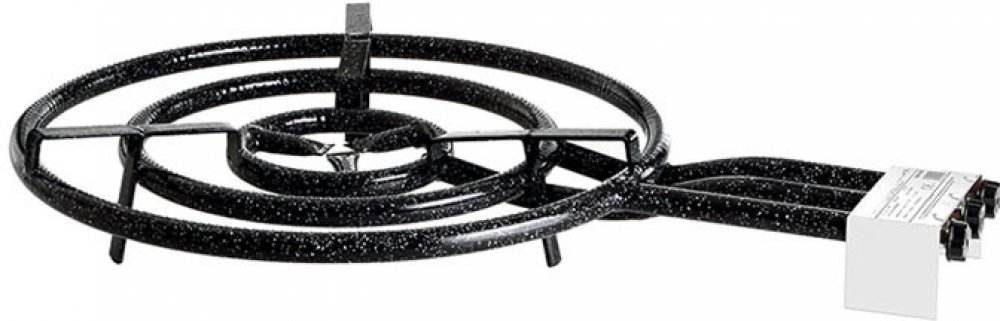 Plynový hořák na propan-butan, 3-prstencový trubkový hořák s nezávislou regulací o průměru 60 cm s výkonem 21 kW.