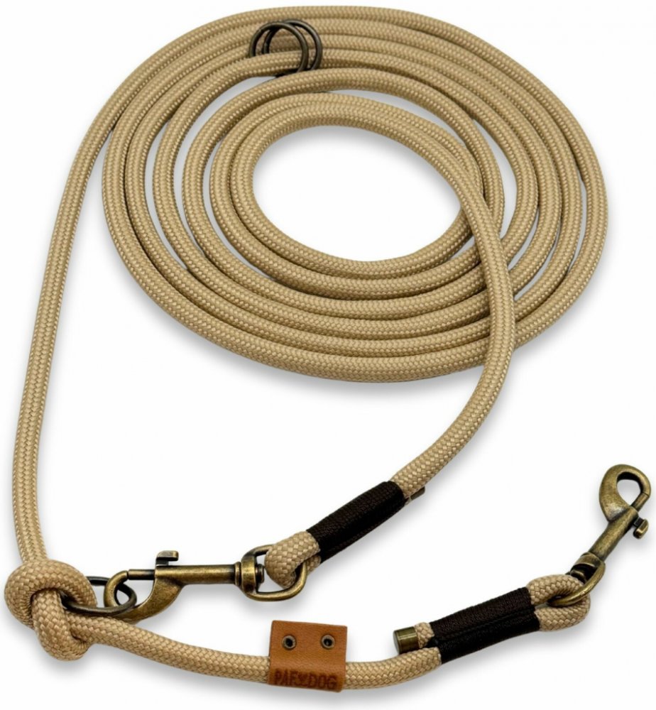 Na vodítku najdete tři kovové kroužky, které si každý sám jednoduše upevní pomocí uzlu přesně tam, kde mu to nejvíce vyhovuje. Díky tomuto systému si můžete vodítko přizpůsobit podle svých potřeb i stylu venčení – kroužek snadno posunete a zajistíte jednoduchým uzlem, bez nutnosti speciálních nástrojů.