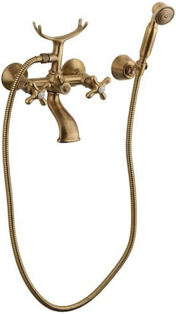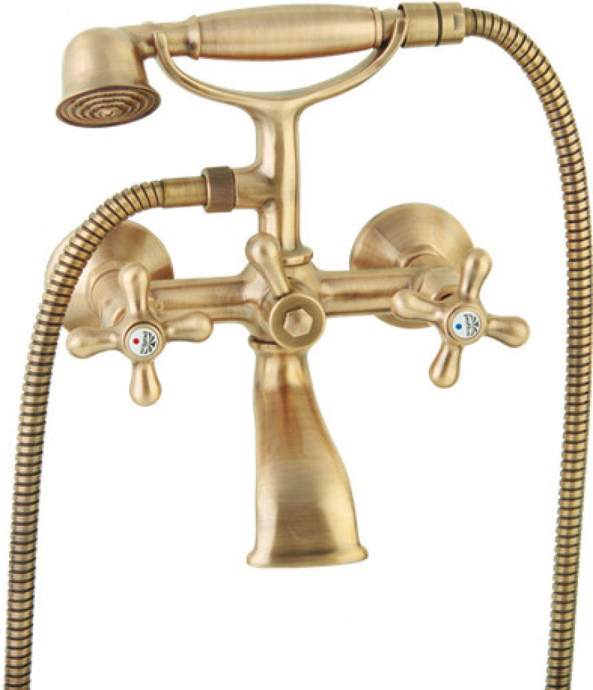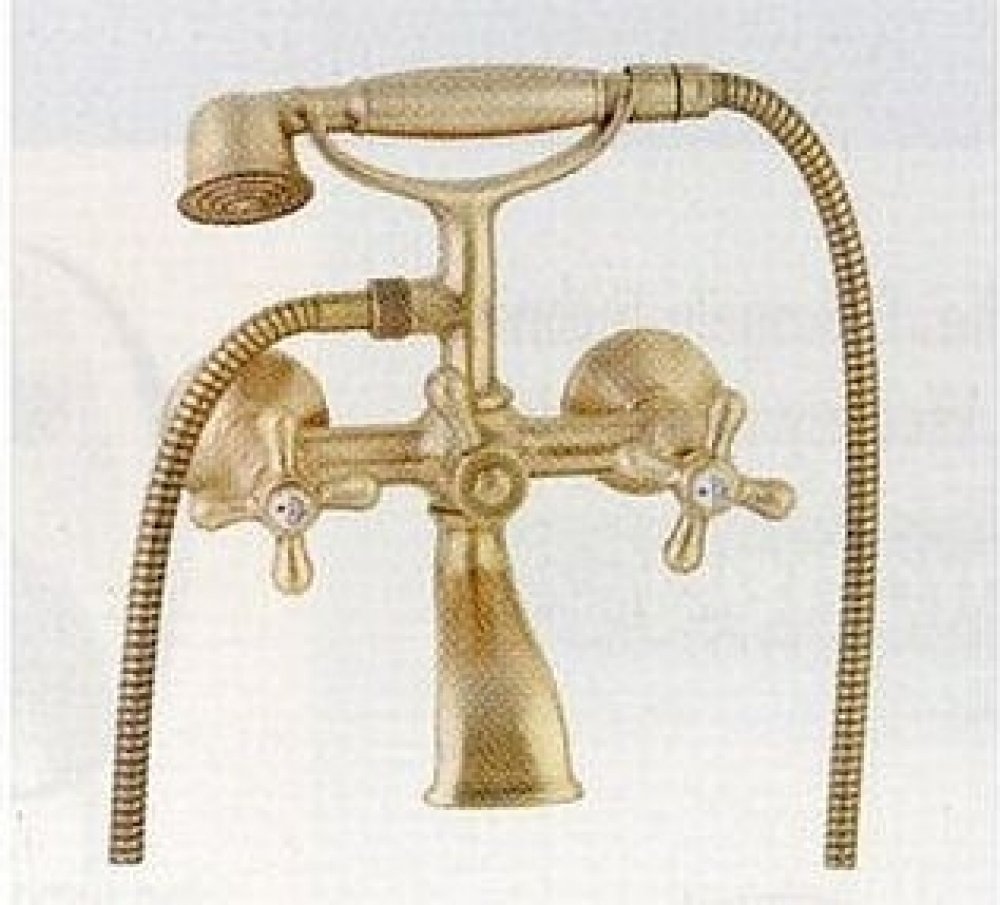 Křížové kohoutky dodávají baterii autentický vzhled.Vanová baterie je dodávána se sprchovým kompletem (koncovka, hadice, držák sprchy) v retro stylu.