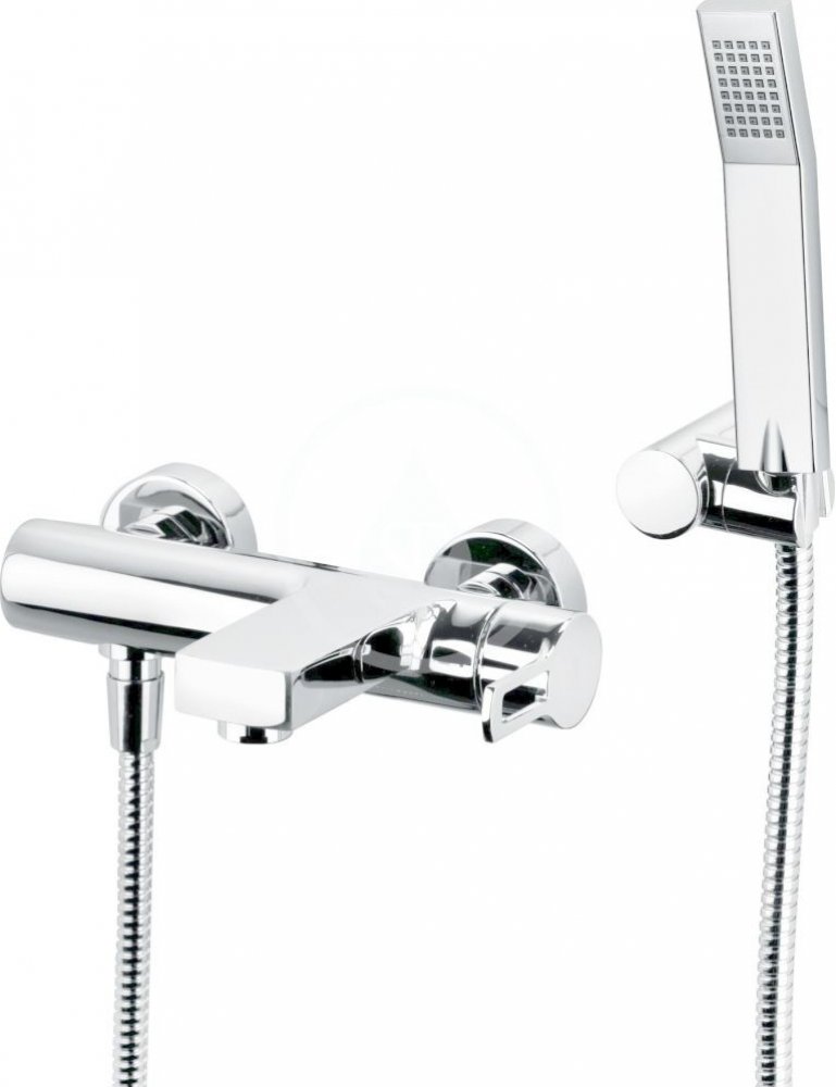 Vanová baterie nástěnná páková baterie včetně ruční sprchy, držáku a flexibilní hadice přepínač šířka baterie 244 mm perlátor M28x1 povrchová úprava chrom Set obsahuje baterii, krytky etážek, flexibilní hadici, ruční sprchu a držák.