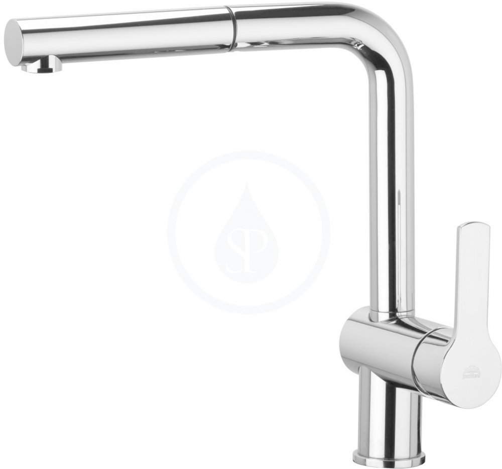 Kuchyňská dřezová stojánková páková baterie s vytahovací sprškou délka raménka 247 mm, komfortní zóna 254 mm výška baterie 286 mm ruční sprška, 1 proud otočné raménko set 2 nerezových hadiček G 3/8" pro připojení k roháčkům v délce 45 cm nerezová hadice M15x1 se závažím povrchová úprava chrom